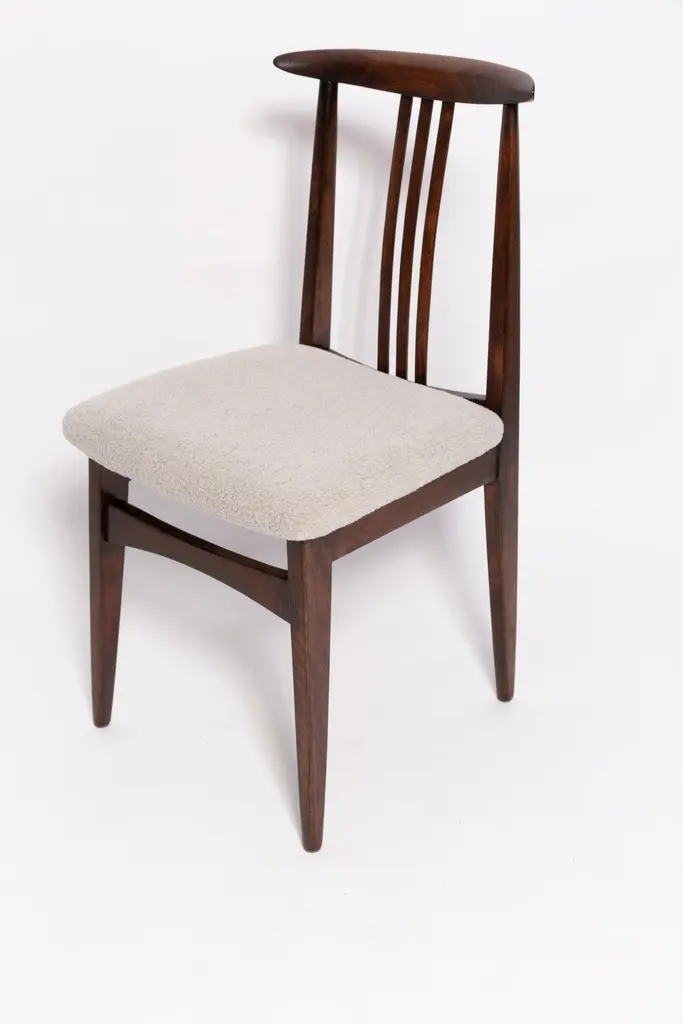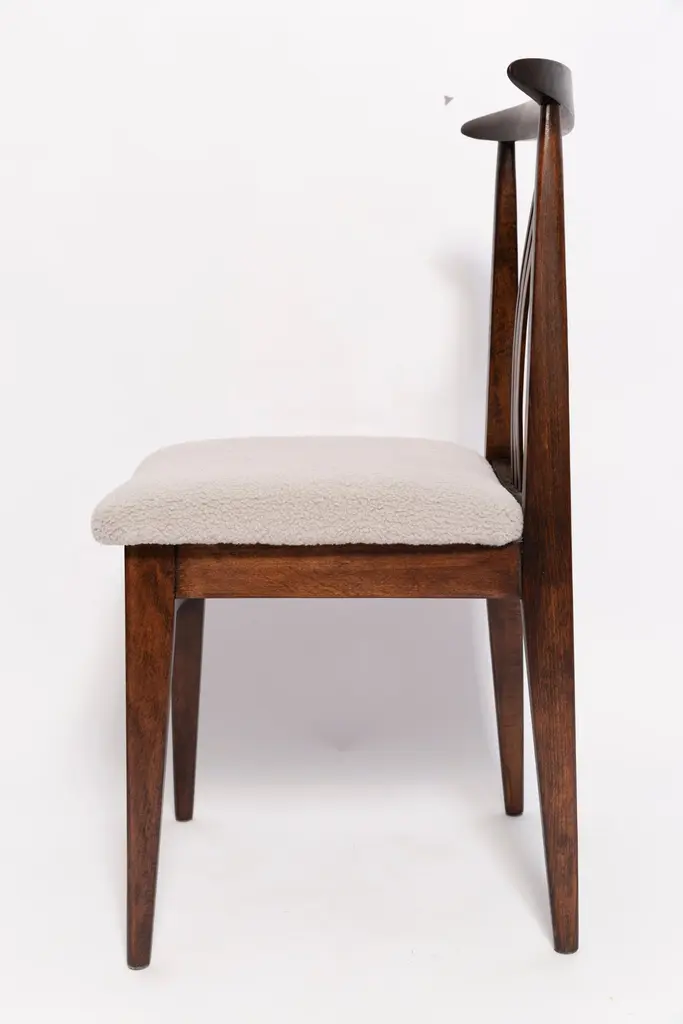 A beautiful beech chair designed by M. Zielinski, type 200 / 100B. Manufactured by the Opole Furniture Industry Center at the end of the 1960s in Poland. The chair is after undergone a complete carpentry and upholstery renovation. Seats covered with high-quality italian light linen boucle fabric (color 08). Wood is after full refreshing. This model of chair have very nice and organic shape. They have amazing form. Even in small size the Zielinski's chair is very comfortable. We highly recommend them to every type of interior. We can prepare also bigger sets in every color of wood and boucle. Please have a look on the last picture. Waiting time up to 3 weeks. Cheap delivery guaranteed.