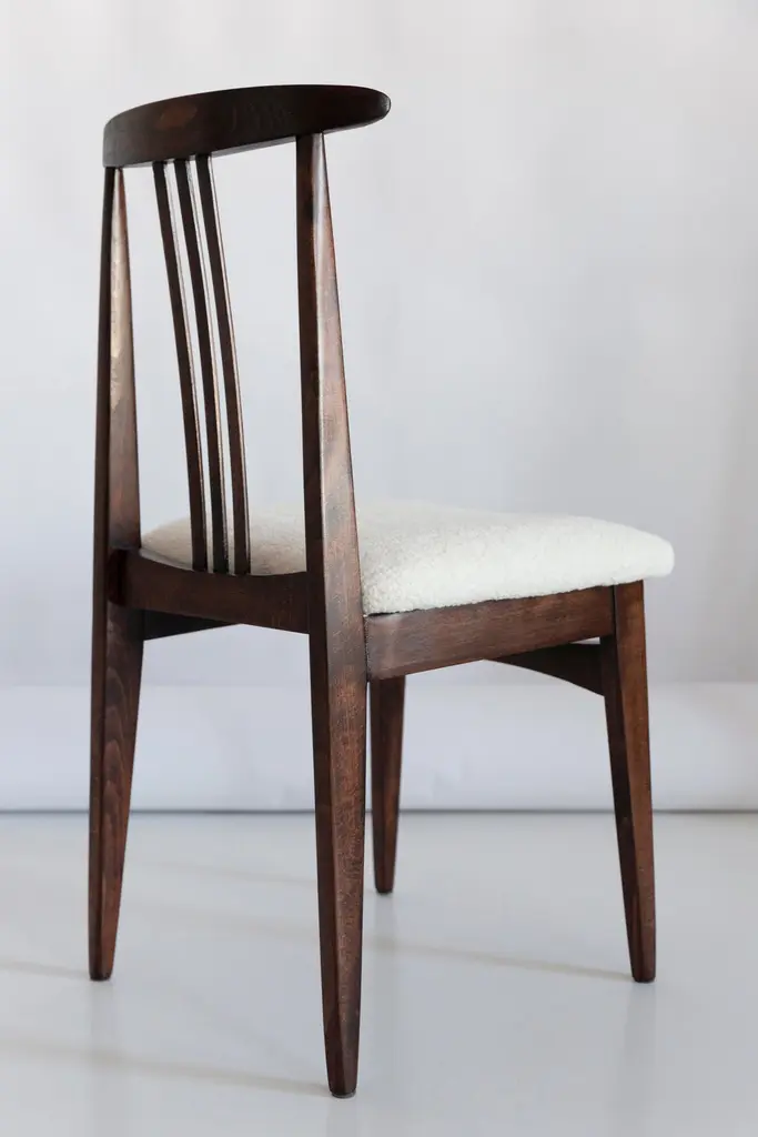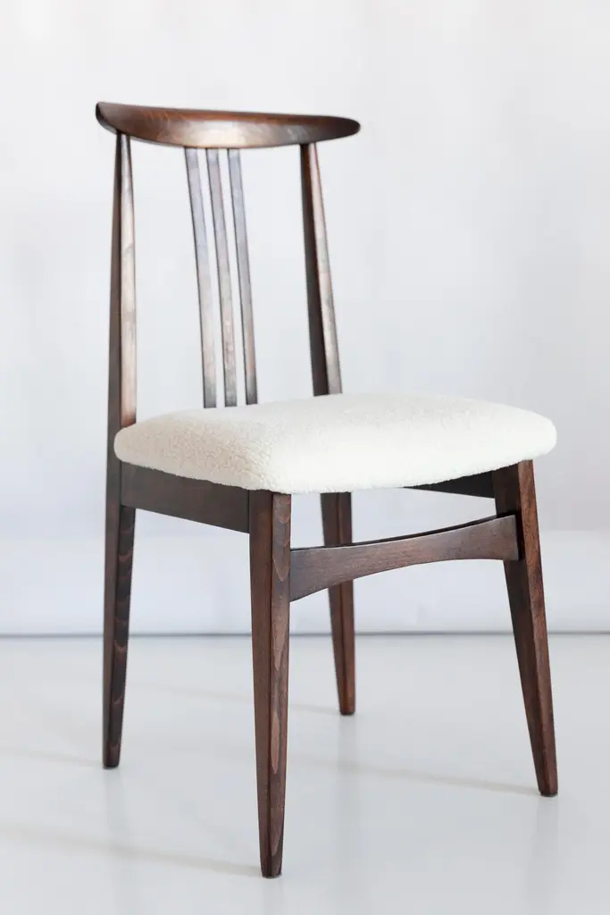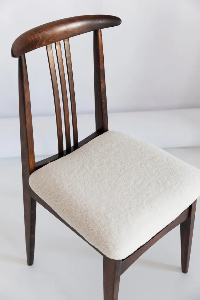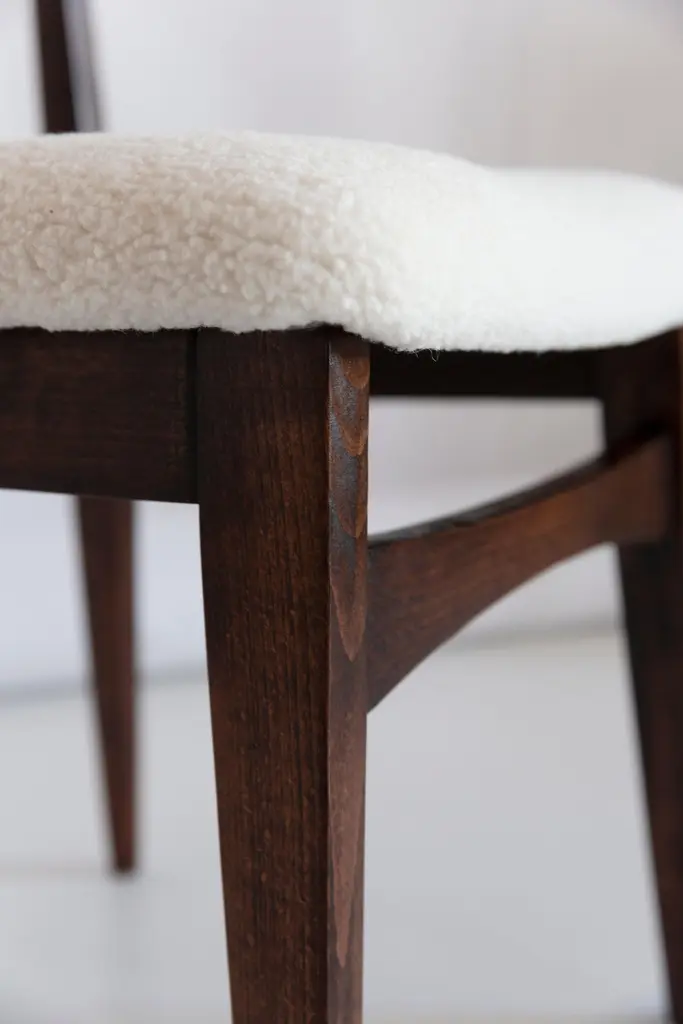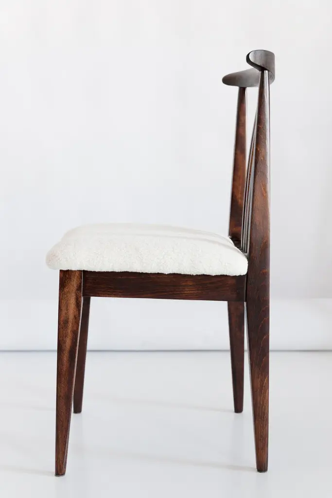 A beautiful beech chair designed by M. Zielinski, type 200 / 100B. Manufactured by the Opole Furniture Industry Center at the end of the 1960s in Poland. The chair is after undergone a complete carpentry and upholstery renovation. Seats covered with high-quality Italian light white boucle fabric (color 01). Wood is after full refreshing. We can prepare also bigger sets in every color of wood and boucle. Please have a look on the last picture and ask for more informations. Waiting time up to 3 weeks. Cheap delivery guaranteed.