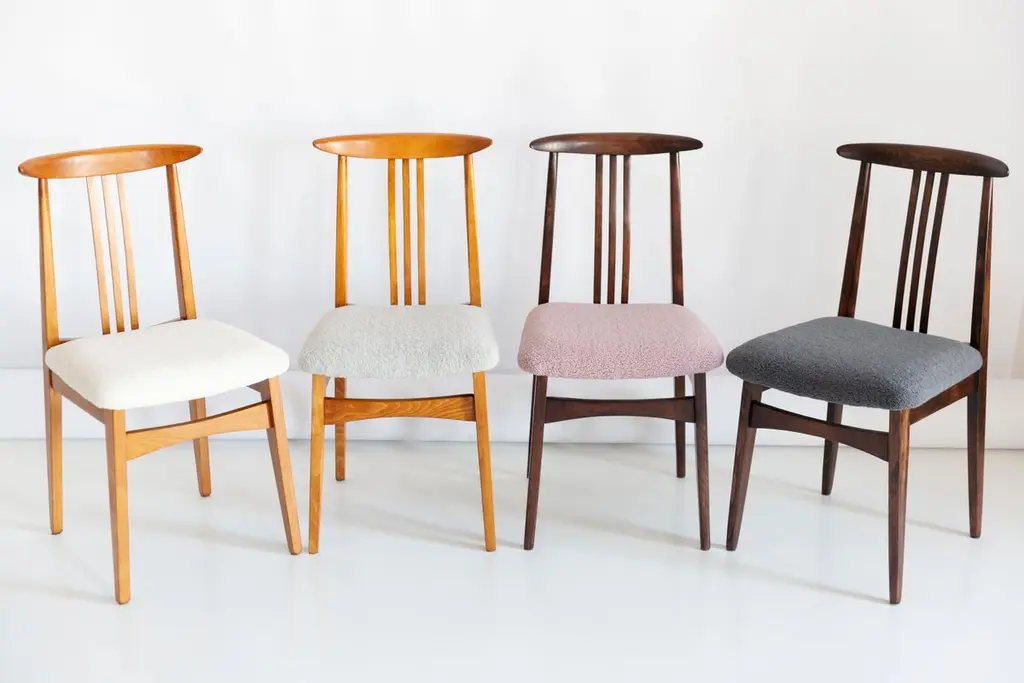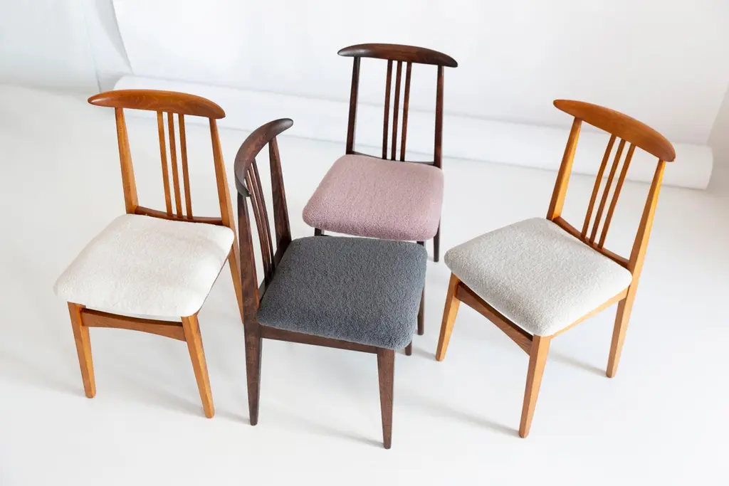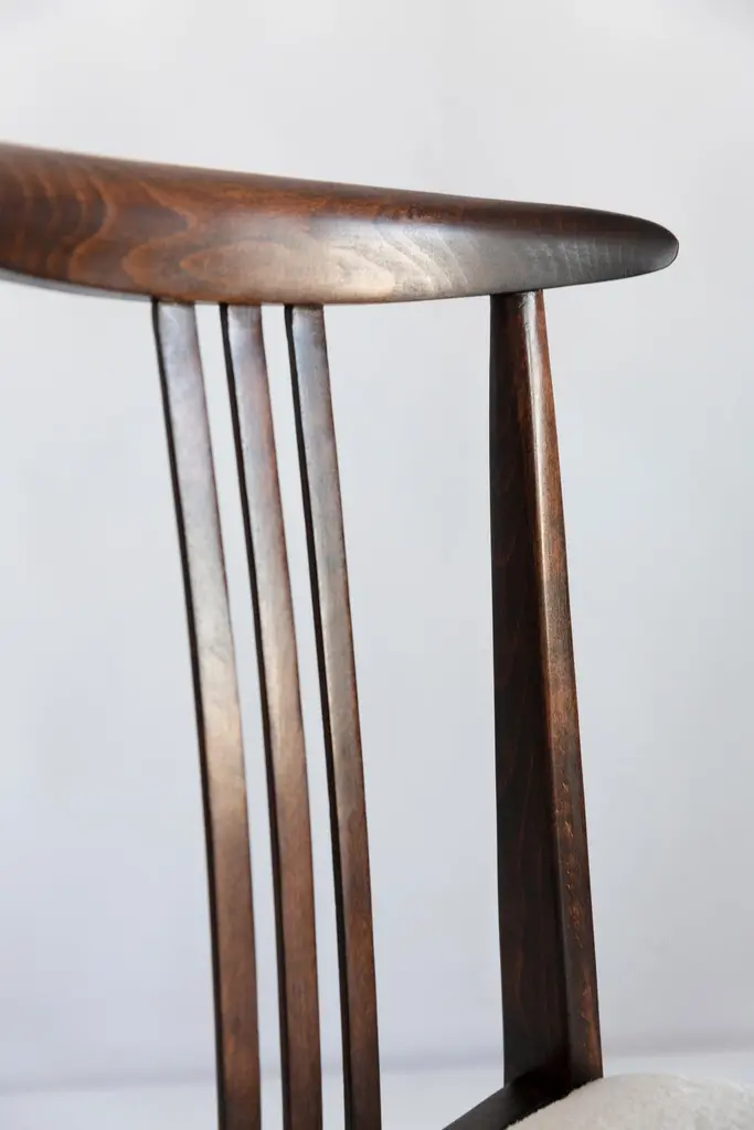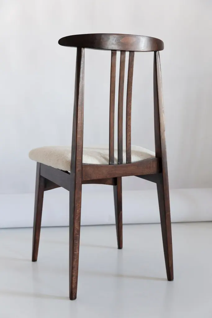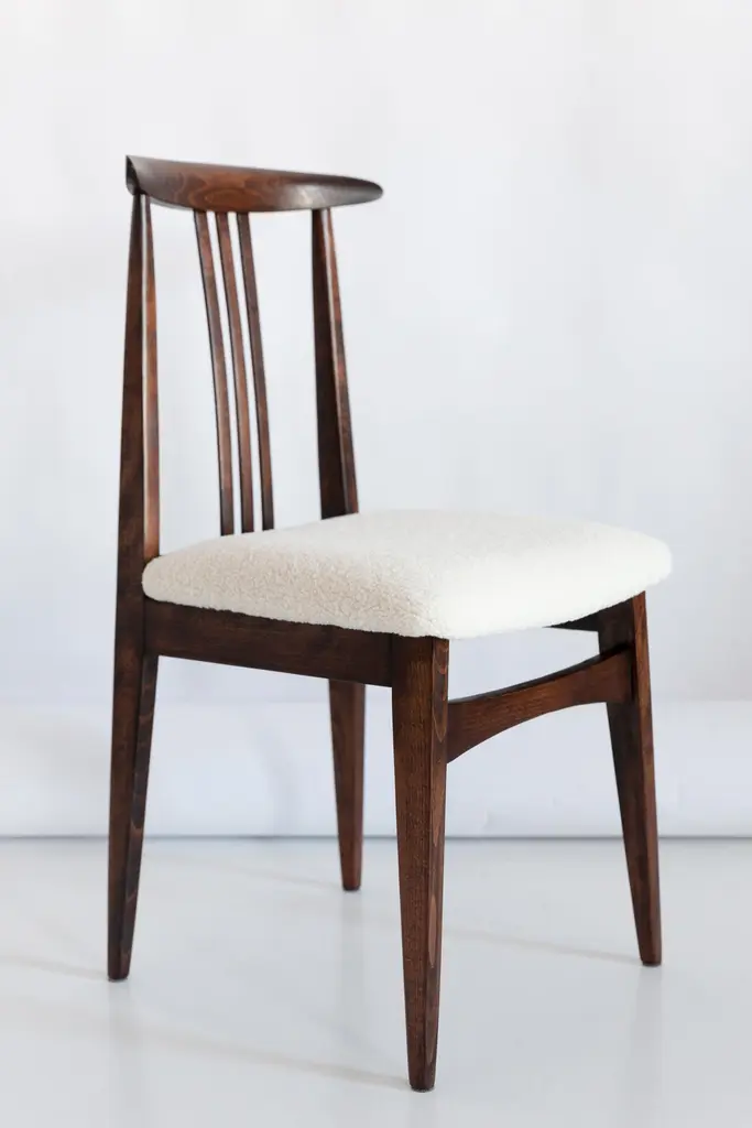 A beautiful beech chair designed by M. Zielinski, type 200 / 100B. Manufactured by the Opole Furniture Industry Center at the end of the 1960s in Poland. The chair is after undergone a complete carpentry and upholstery renovation. Seats covered with high-quality Italian light white boucle fabric (color 01). Wood is after full refreshing. We can prepare also bigger sets in every color of wood and boucle. Please have a look on the last picture and ask for more informations. Waiting time up to 3 weeks. Cheap delivery guaranteed.