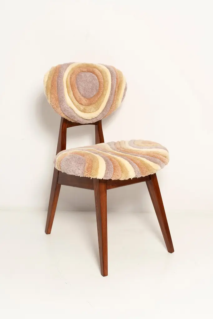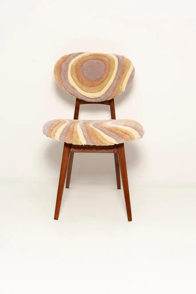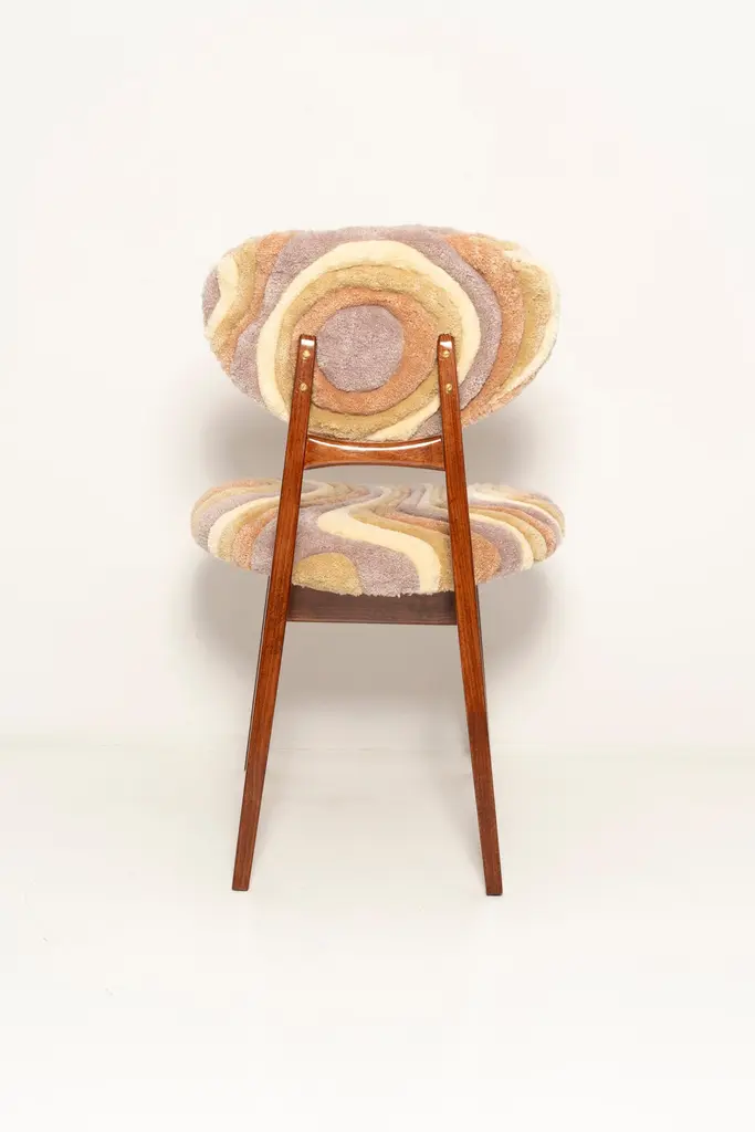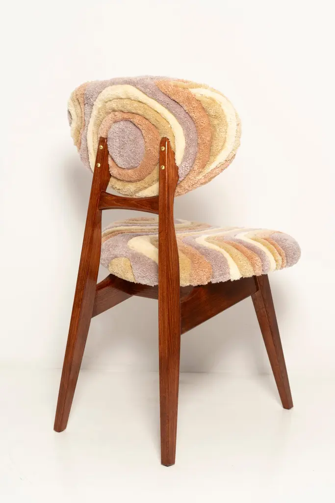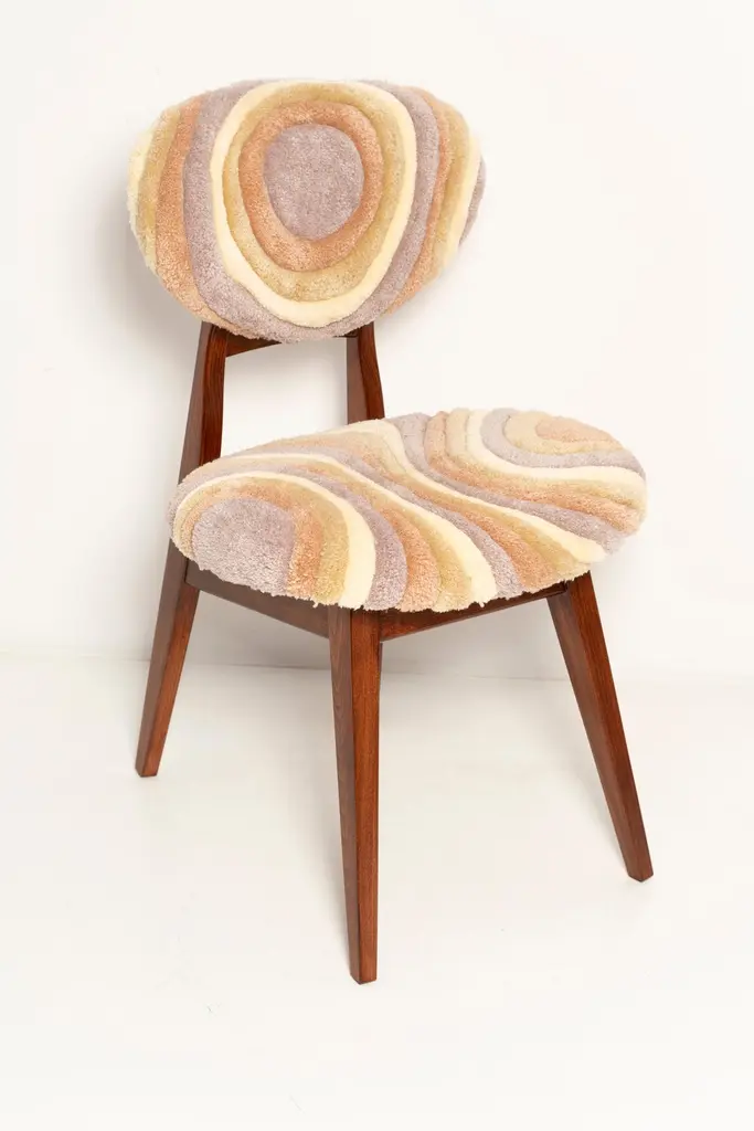Beautiful chairs type 200/128, designed by Juliusz Kedziorek and manufactured by Goscieninska Furniture Factory in Poland. We called them "mushroom" chairs cause of light and nice shape.A very characteristic form, one of the most interesting Polish projects. They are absolutely super comfortable. This chair can be customized to your specifications or COM. Wood, stain, finish, fabric and custom options are available. Check the last pictures with color samples. This is vintage chair after professional renovation. Designed in 1960s in Poland.About the fabric used in this option:Seat and back is hand tufting multicolor wool. Absolutely hand made technic. Every chair is unique and can be a bit different. They are extremely comfortable and highly decorative. We can prepare this chair in another wool tufting colors.Different patterns are also possible.Waiting time is 3-4 weeks. Hand made in Poland.