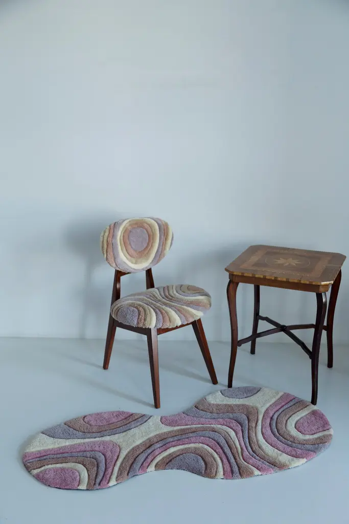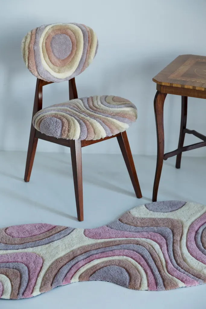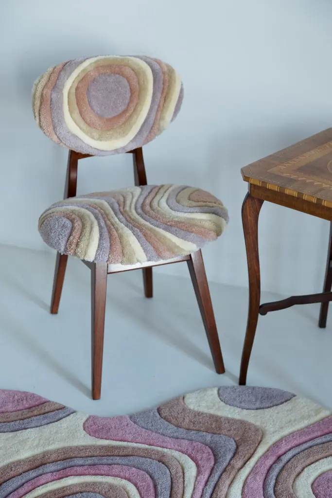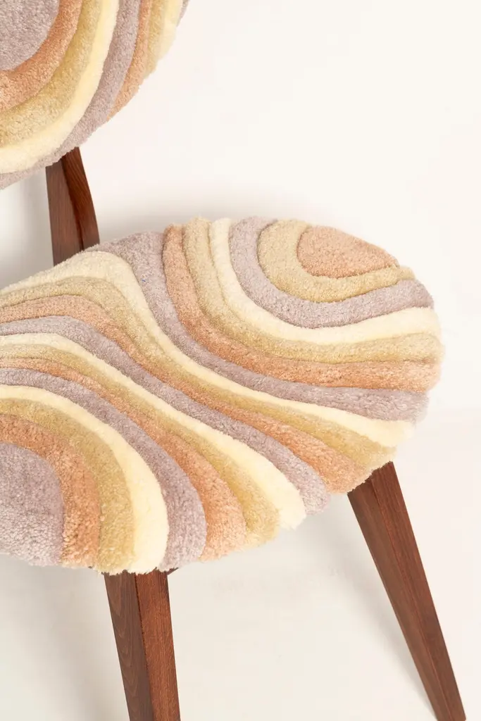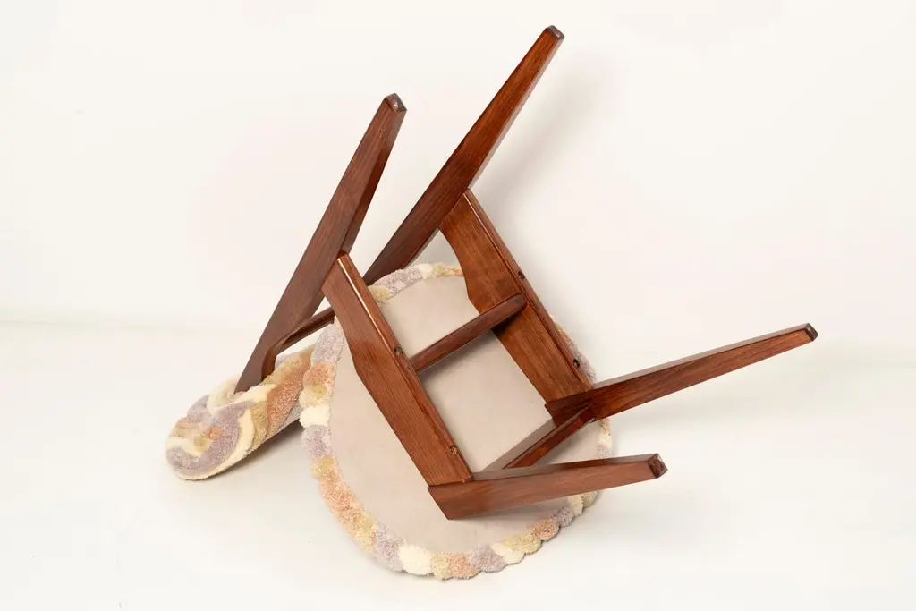 Beautiful chairs type 200/128, designed by Juliusz Kedziorek and manufactured by Goscieninska Furniture Factory in Poland. We called them "mushroom" chairs cause of light and nice shape.A very characteristic form, one of the most interesting Polish projects. They are absolutely super comfortable. This chair can be customized to your specifications or COM. Wood, stain, finish, fabric and custom options are available. Check the last pictures with color samples. This is vintage chair after professional renovation. Designed in 1960s in Poland.About the fabric used in this option:Seat and back is hand tufting multicolor wool. Absolutely hand made technic. Every chair is unique and can be a bit different. They are extremely comfortable and highly decorative. We can prepare this chair in another wool tufting colors.Different patterns are also possible.Waiting time is 3-4 weeks. Hand made in Poland.