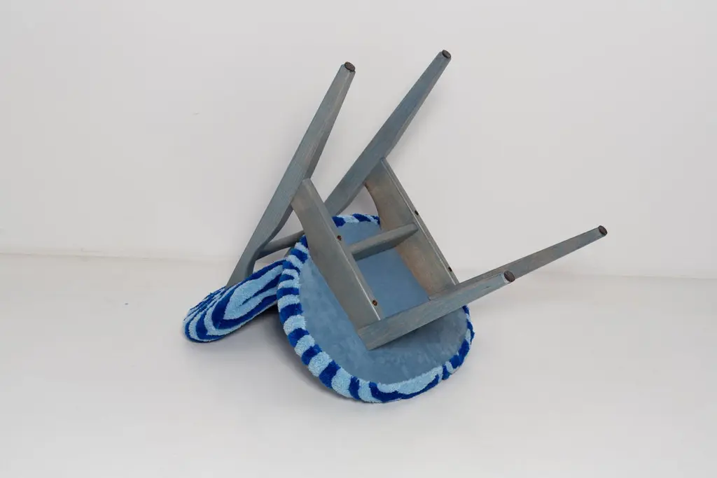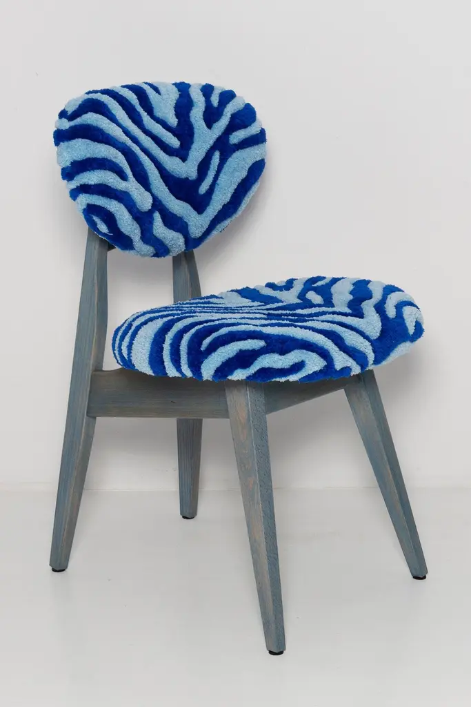 Mid Century Mushroom Chair, Hand Tufting Blue Zebra Wool, Europe, 1960s