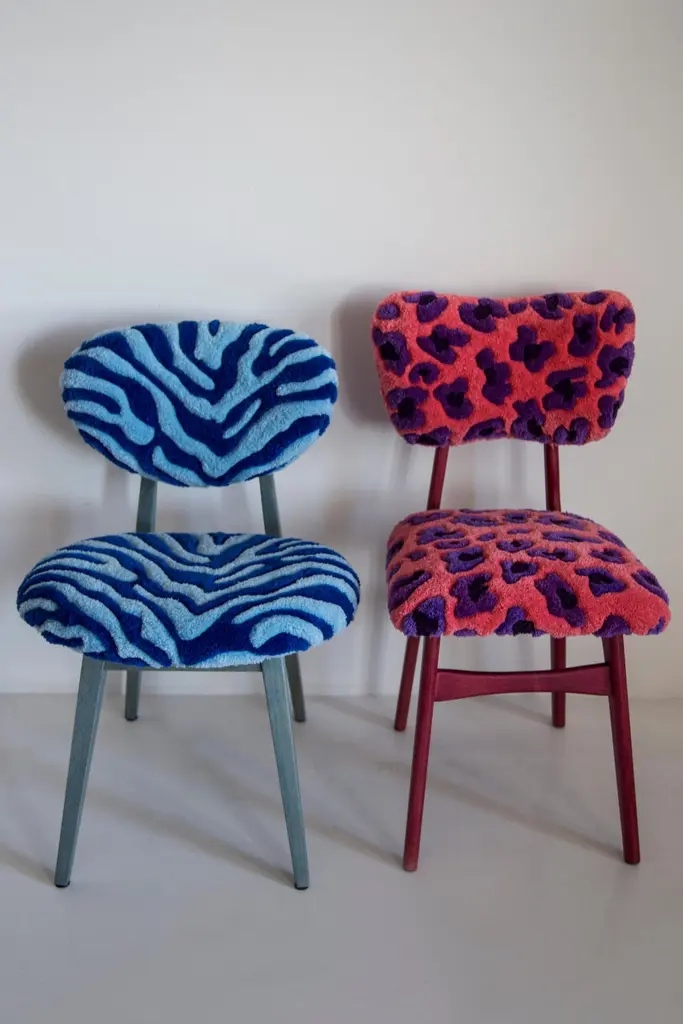 Beautiful chairs type 200/128, designed by Juliusz Kedziorek and manufactured by Goscieninska Furniture Factory in Poland. We called them "mushroom" chairs cause of light and nice shape.A very characteristic form, one of the most interesting Polish projects. They are absolutely super comfortable. This chair can be customized to your specifications or COM. Wood, stain, finish, fabric and custom options are available. Check the last pictures with color samples. This is vintage chair after professional renovation. Designed in 1960s in Poland.About the fabric used in this option:Seat and back is hand tufting multicolor wool. Absolutely hand made technic. Every chair is unique and can be a bit different. They are extremely comfortable and highly decorative. We can prepare this chair in another wool tufting colors.Different patterns are also possible.Waiting time is 3-4 weeks. Hand made in Poland.