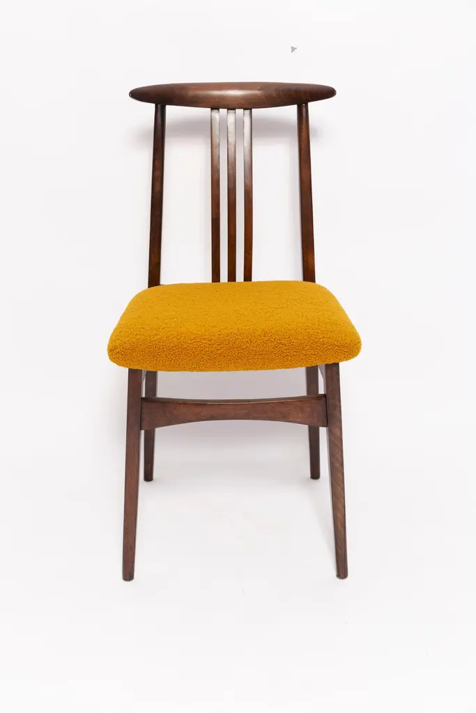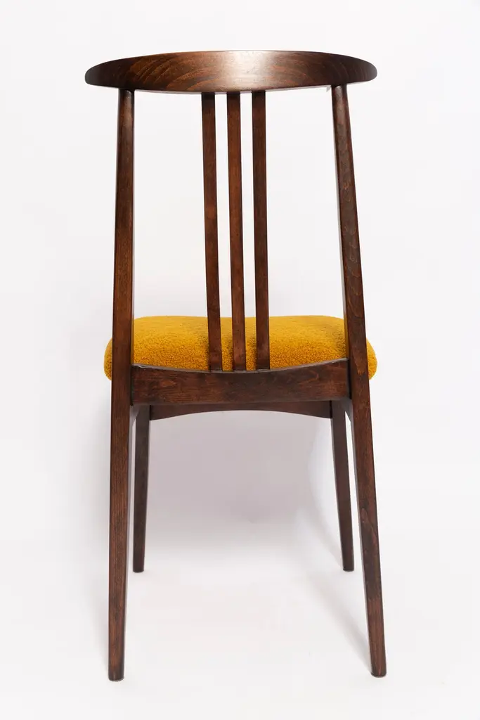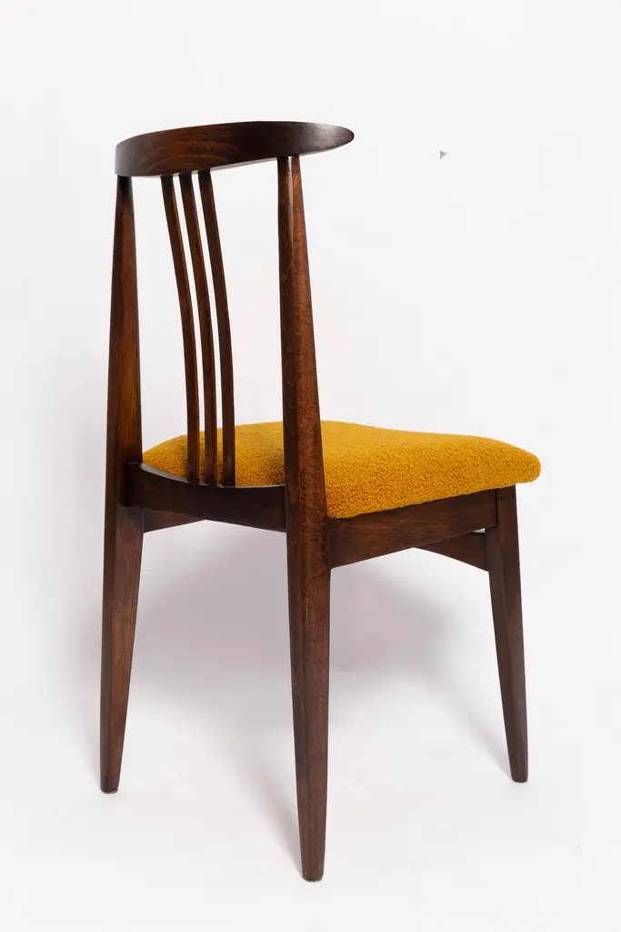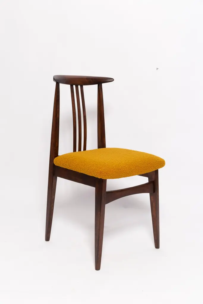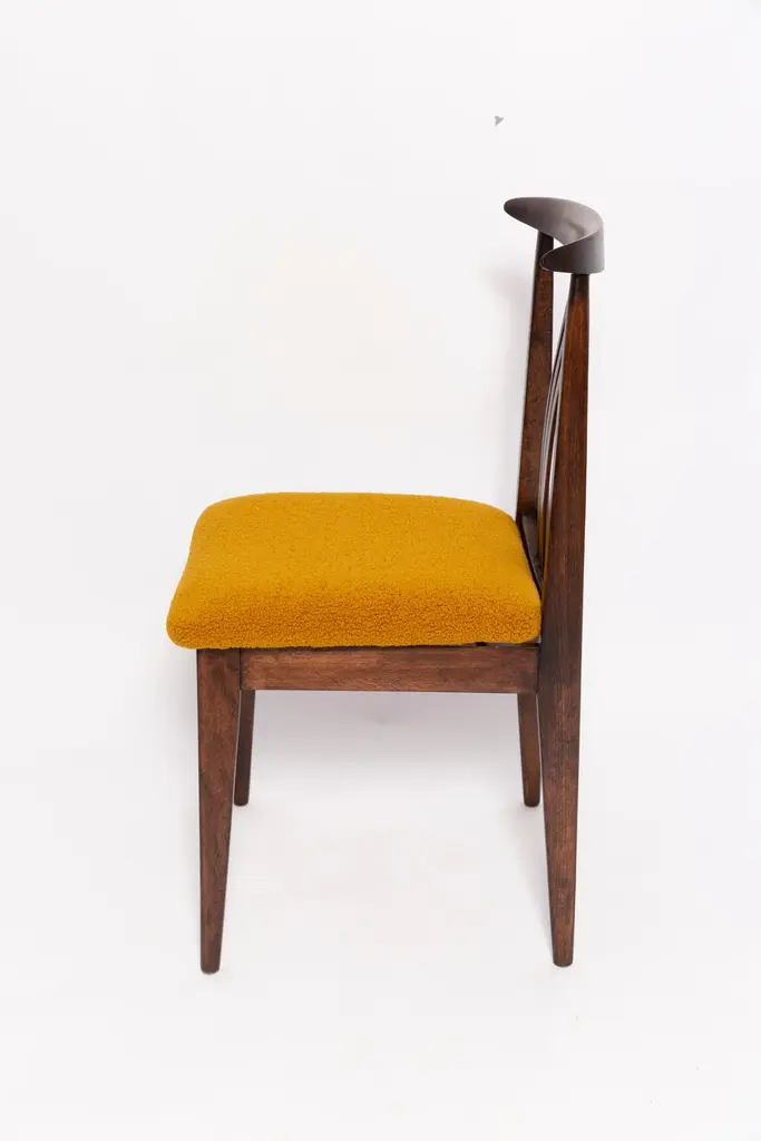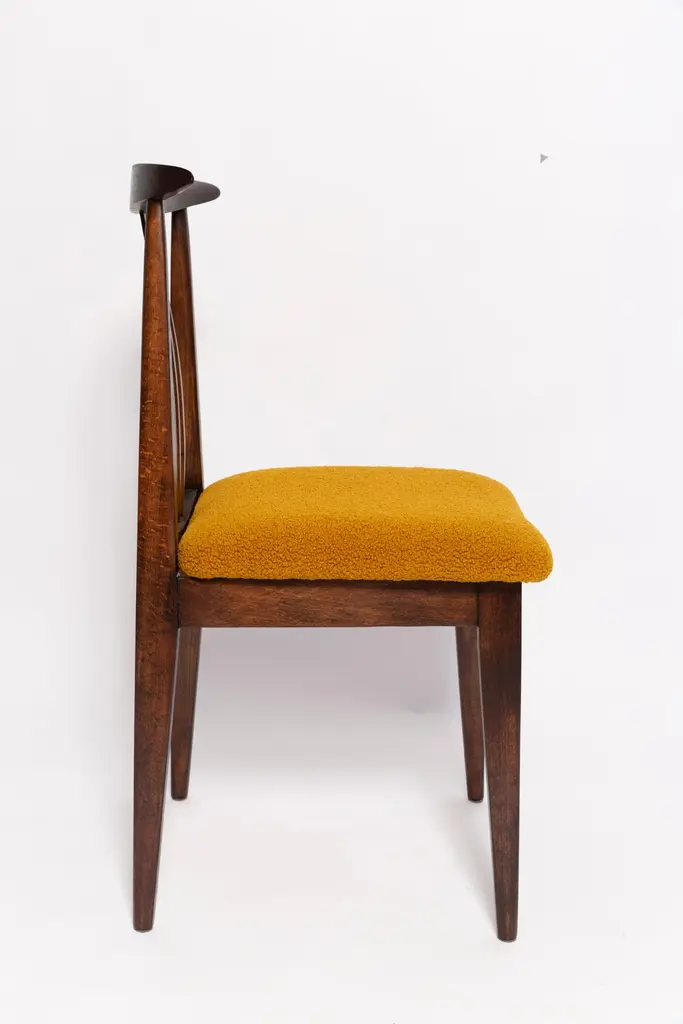 A beautiful beech chair designed by M. Zielinski, type 200 / 100B. Manufactured by the Opole Furniture Industry Center at the end of the 1960s in Poland. The chair is after undergone a complete carpentry and upholstery renovation. Seats covered with high-quality italian mustard yellow ochre boucle fabric (color 05). Beech wood is after full refreshing, varnished in a dark brown color lacquer. This model of chair have very nice and organic shape. They have amazing form. Even in small size the Zielinski's chair is very comfortable. We highly recommend them to every type of interior. ecommend them to every type of interior. We can prepare also bigger sets in every color of wood and boucle. Please have a look on the last picture. Waiting time up to 3 weeks. Cheap delivery guaranteed.