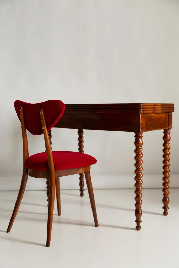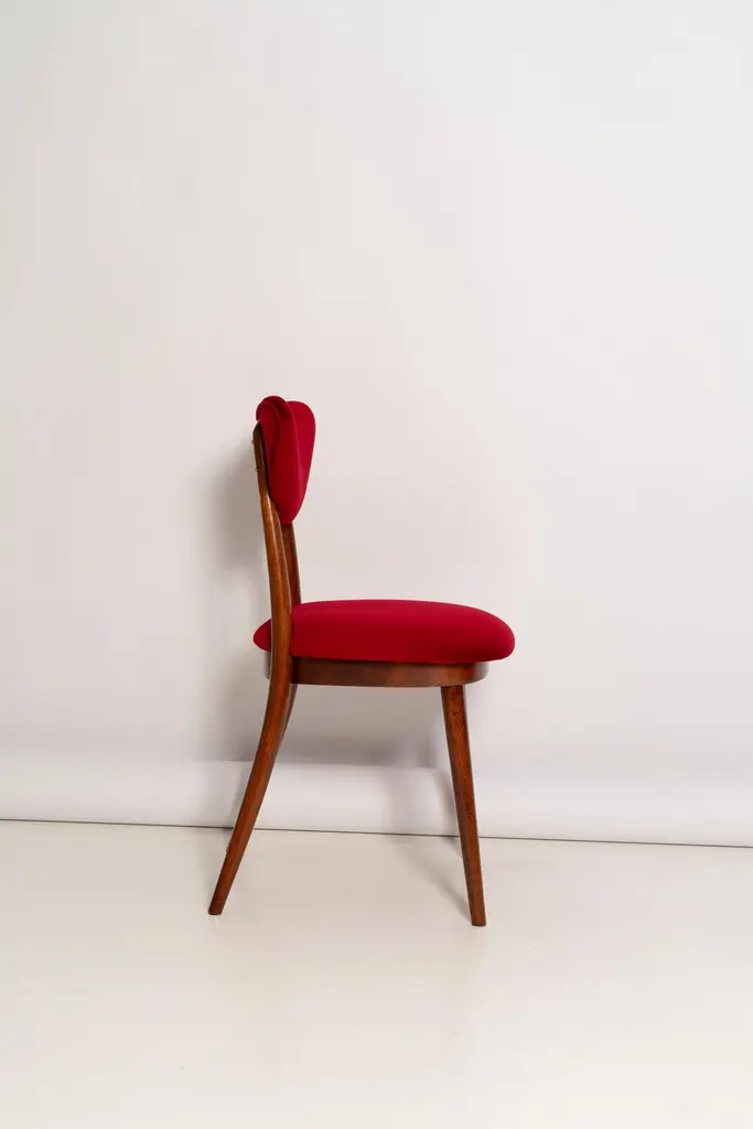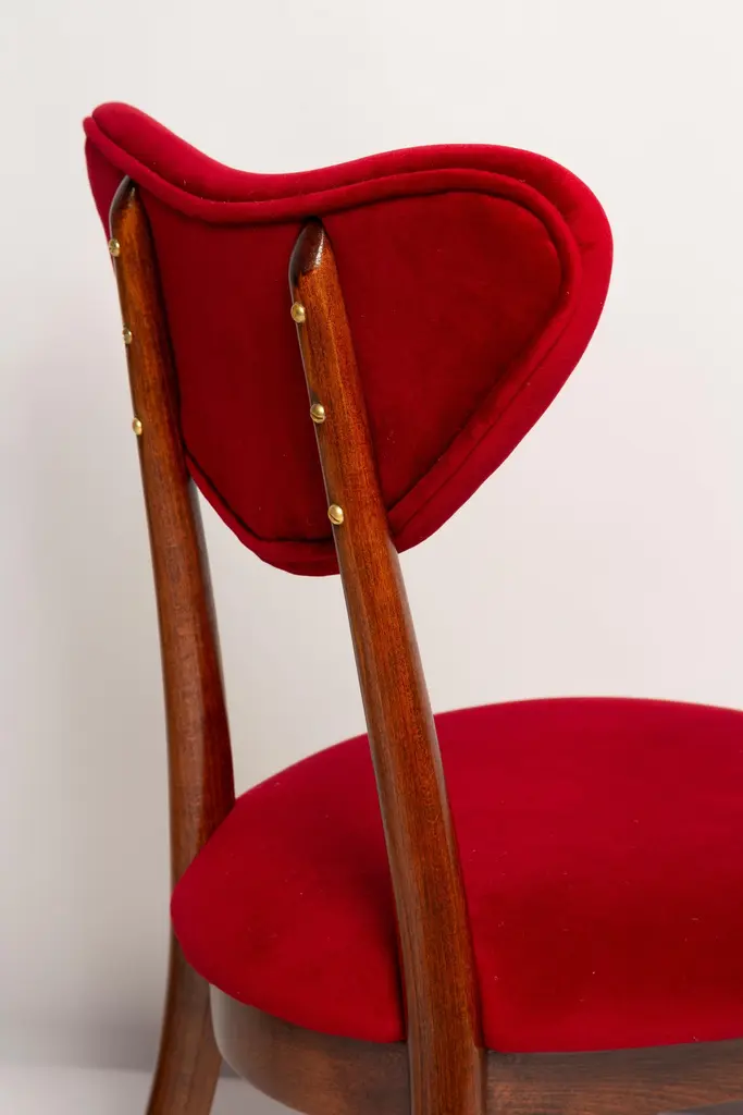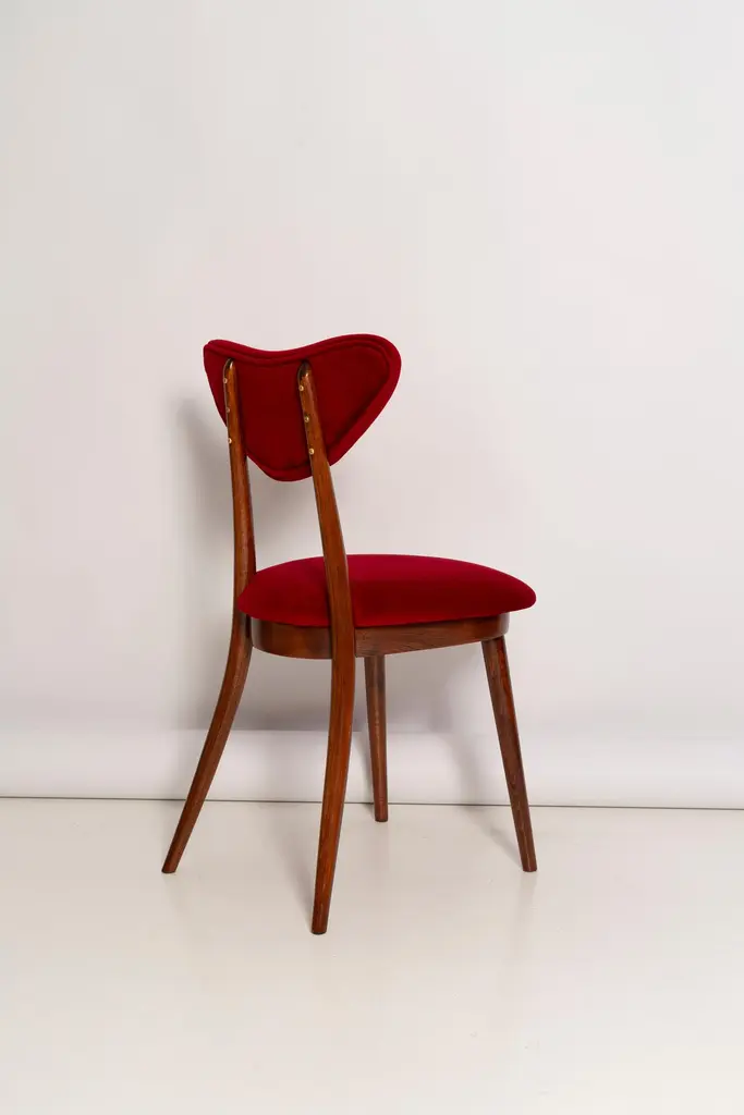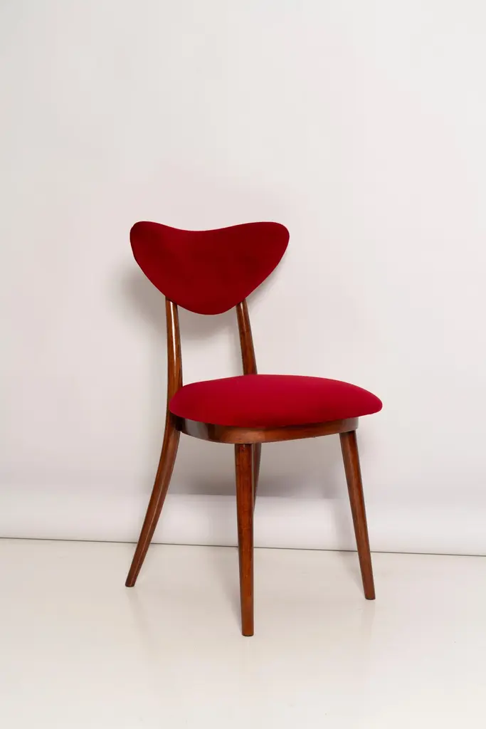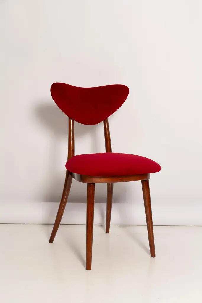 Mid Century Red Velvet, Walnut Wood, Heart Chair, Poland, 1960s