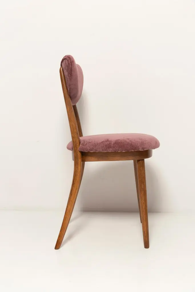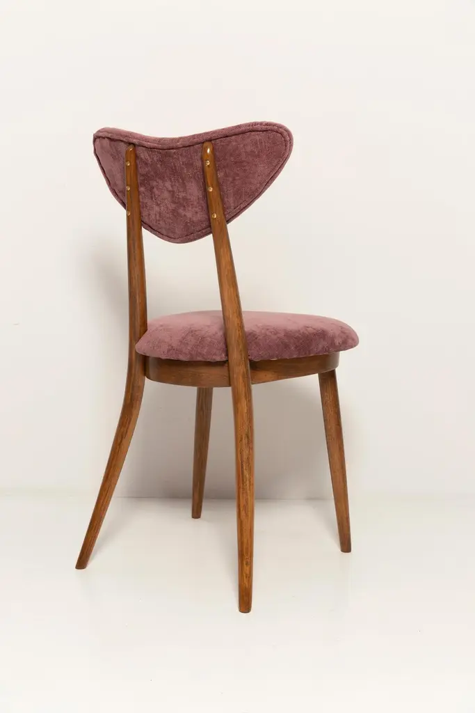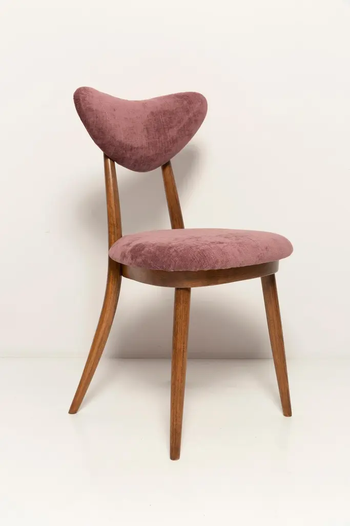 Midcentury Plum Violet Velvet, Walnut Wood Heart Chair, Europe, 1960s