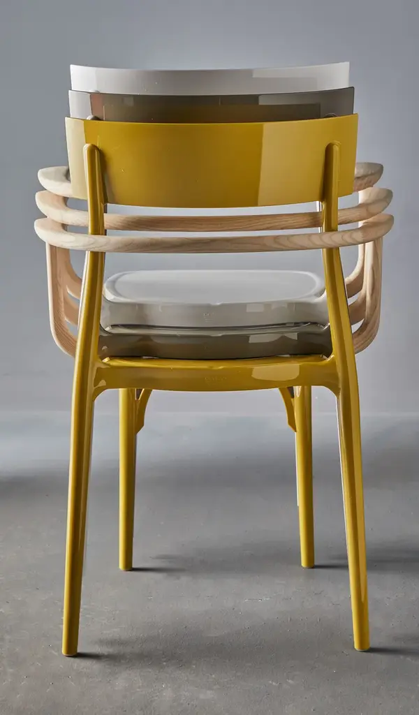 Milano2015 is a chair in soft touch polypropylene, transparent polycarbonate or glossy polycarbonate available in a wide range of colours. Made of recyclable material, the chair is stackable and suitable for outdoor.A dedication to our beloved city: Milan, which in 2015 had the eyes of the world focused on it thanks to the Expo. An emblematic chair, the chair of city meeting places a bridge between the past and the future with its colors, transparencies and ductility. All this is Milano2015.