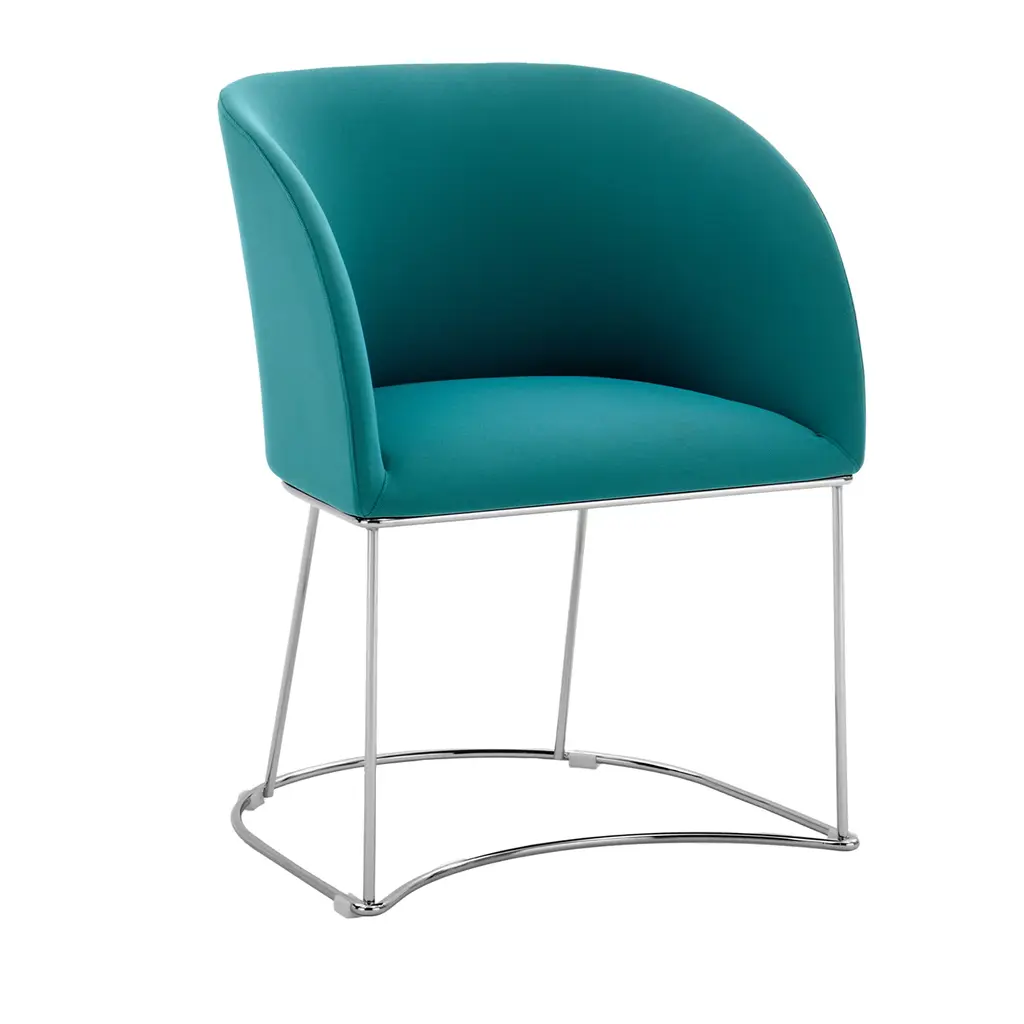 Milly was born from an awareness of all the time we spend sitting. In the office, in waiting rooms and during meetings, the innovative single radius curve in steel rod makes it a chair with essential, contemporary shapes. Visitor chair with internal steel frame with flame-resistant cold foam padding, chromed steel rod frame of 11 mm diameter, upholstered in red flame-resistant fabric. Please ask the Concierge for customization options.