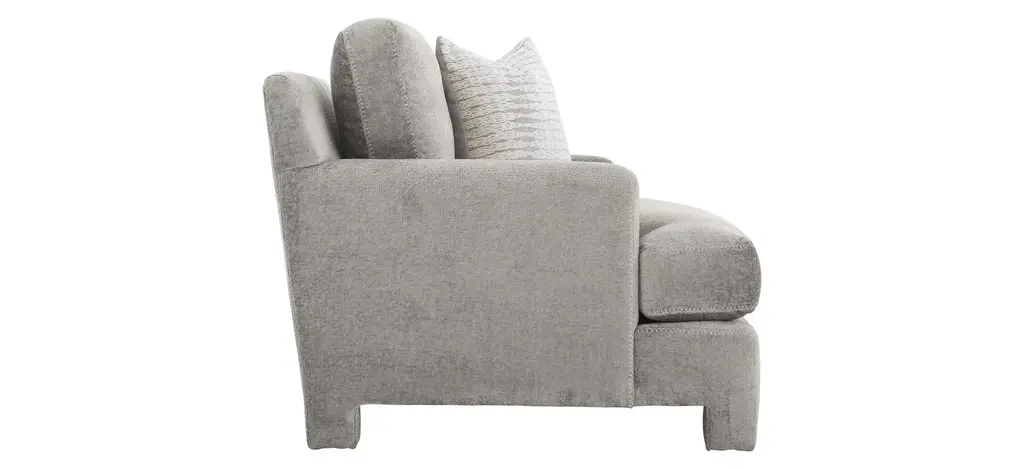 Mily chair brings a soft touch to the luxe living space. The modern design features a low-profile back and recessed track arms. Sumptuous feather down cushioning offers luxurious comfort, while the combination of natural fabric and relaxed tailoring presents a serene, sophisticated look.