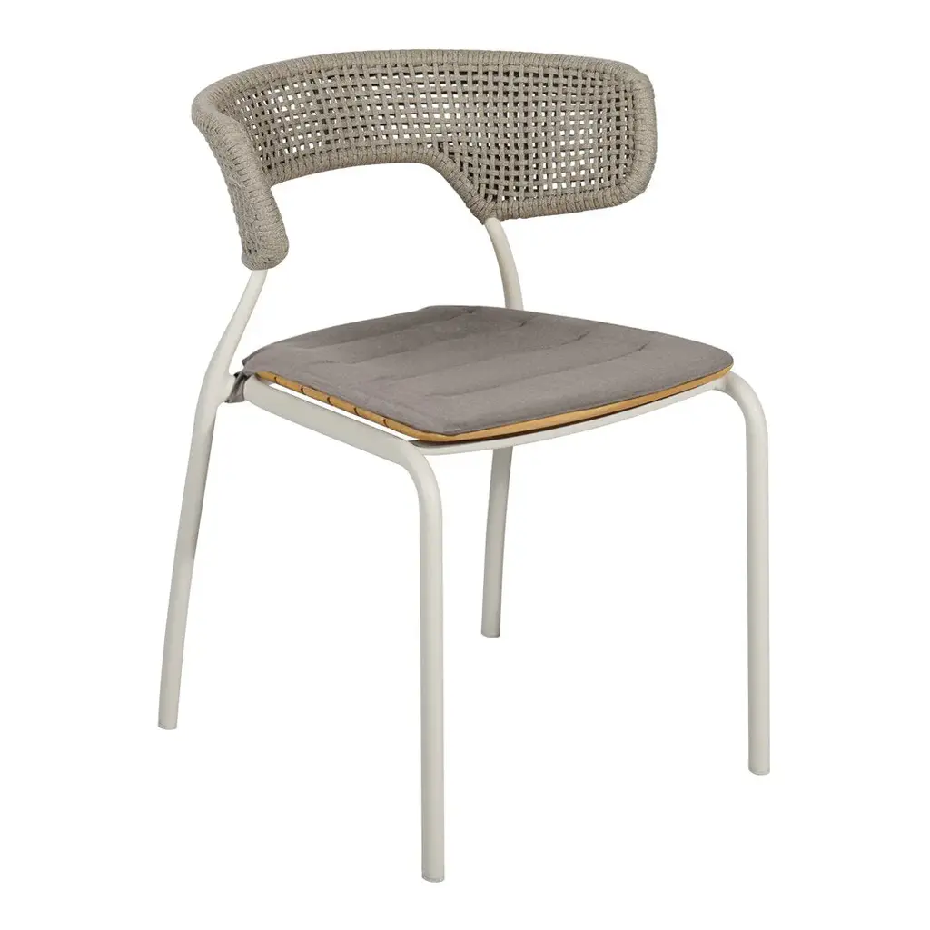This dining concept offers superior comfort and unique details that set the scene for special moments with friends, family or some peaceful moments alone. The dining chair has a unique aluminium frame, with a teak seat and a handwoven back made of high-quality rope with a soft yet durable surface. Comes in two colour options, as do the matching dining tables.