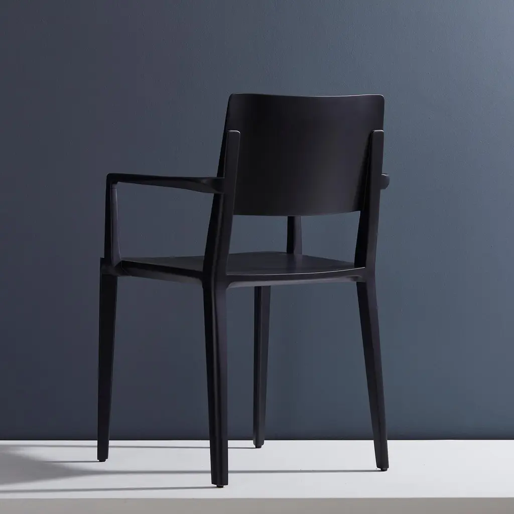 Minimalist Modern Chair In Solid Wood Black Finish With Arms