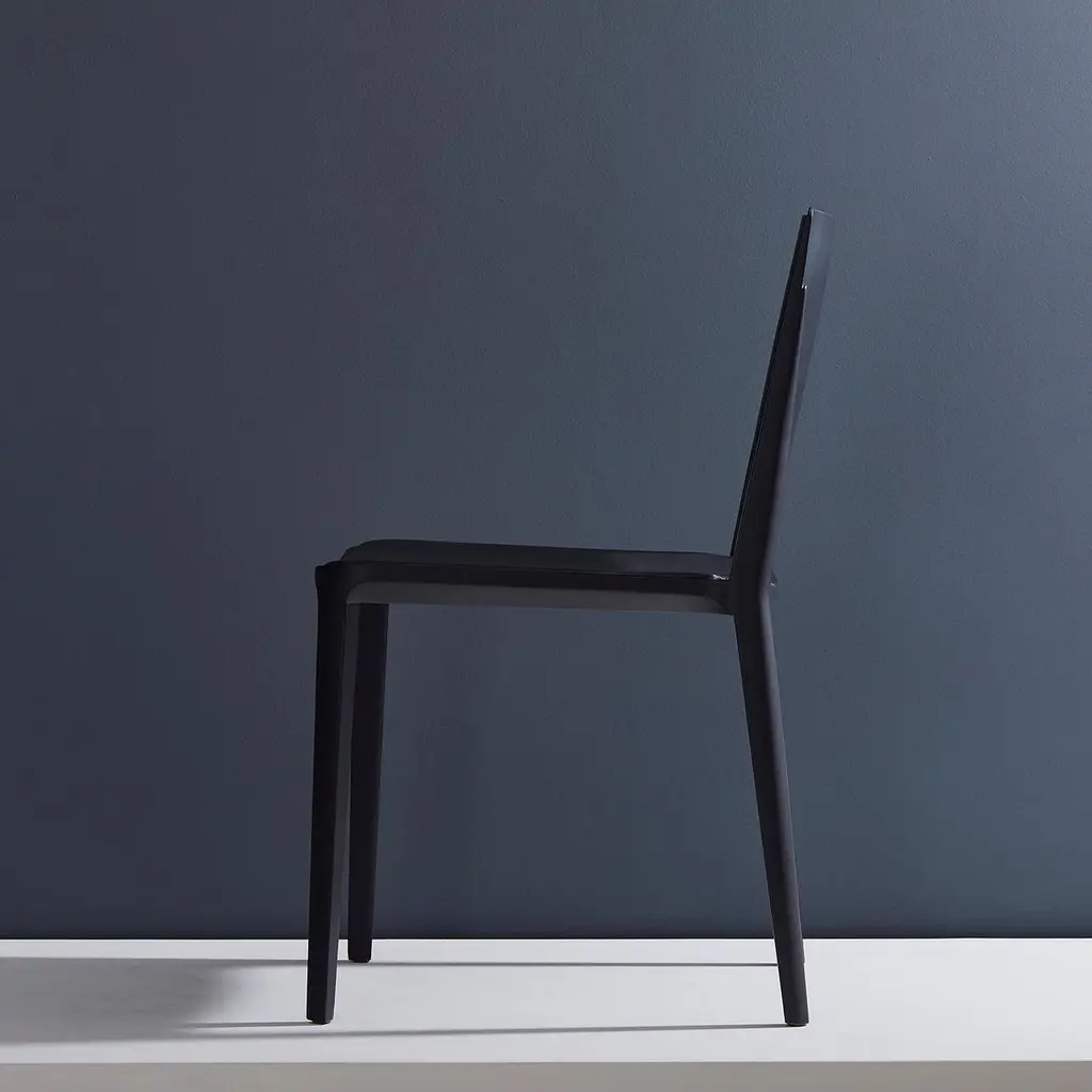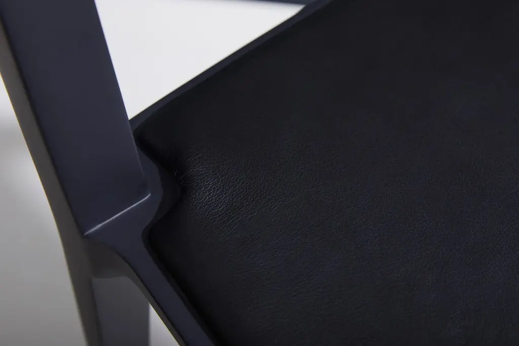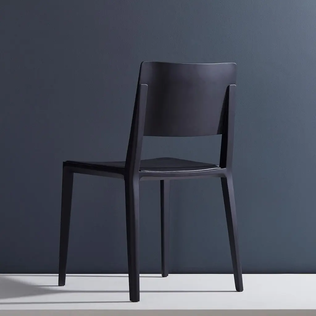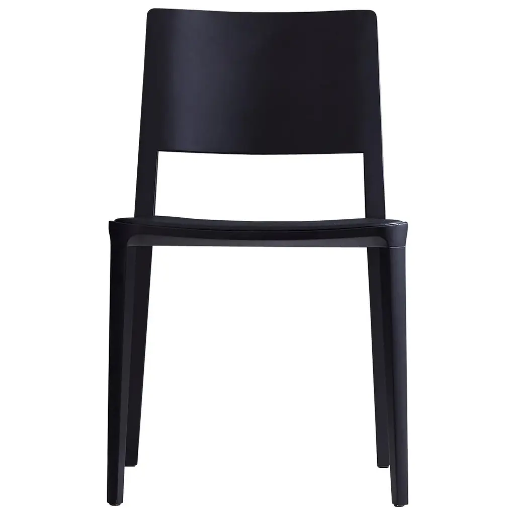Minimalist Modern Chair In Solid Wood Solid Black Finish, Leather Seating