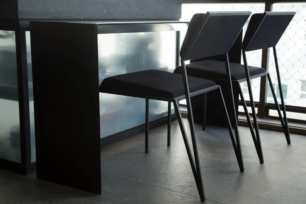 The 'Velvet' chair in black was designed from clean and pure lines with the elimination of any kind of excesses so that your greater identity were the colors, in a range of 09 options chosen by the user. By its Minimalist appearance, the color of the structure always accompanies the color of the fabric, guaranteeing visual unity to the product.The backrest height does not exceed the top of tables which reflects its minimalism concept and contemporary appeal and the seat and backrest foam has been cut in an angle to keep the posture user correct all the time.Several studies were done until a clean, delicate and comfortable drawing was achieved. This aesthetic cleaning has also been achieved with the use of 15mm thick steel, resulting in a minimal product but at the same time, very resistant.In 2017, this chair was indicated to German Award.Check all the colors chart in the photos.