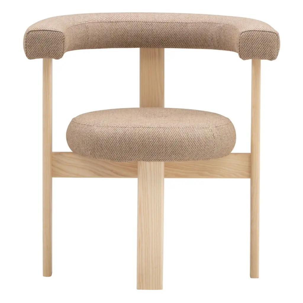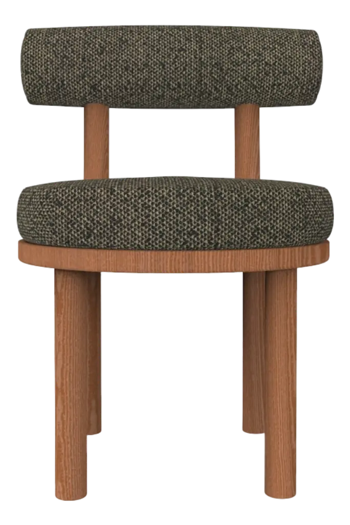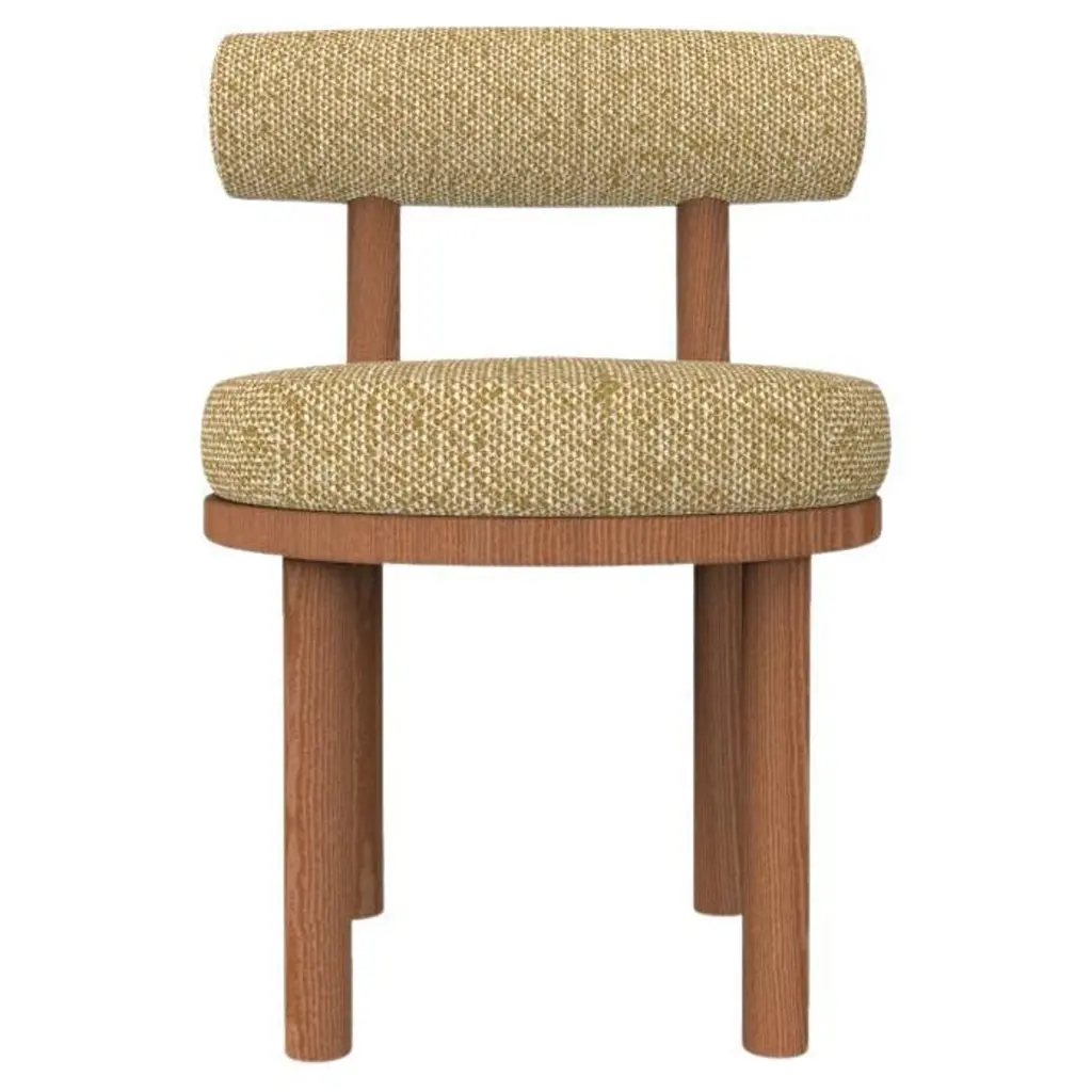 A chair that mixes both modern and classical design approaches. Designed to hug the body, durable and solid chair features a body structure produced in solid wood. In Solid oak wood structure and upholstered in fabric. This piece can be customized to everyones taste. Made in Portugal, by Collector