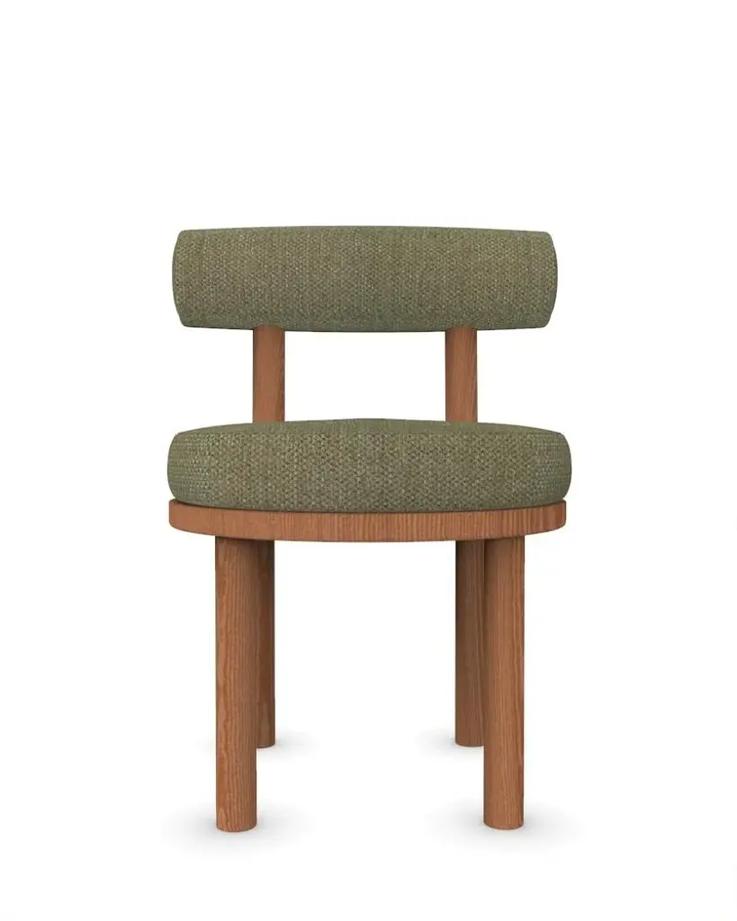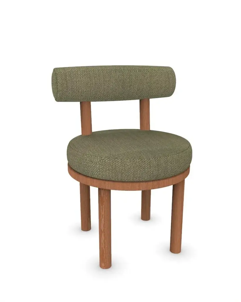 A chair that mixes both modern and classical design approaches. Designed to hug the body, durable and solid chair features a body structure produced in solid wood. In Solid oak wood structure and upholstered in fabric. This piece can be customized to everyones taste. Made in Portugal, by Collector Labeled by Maker