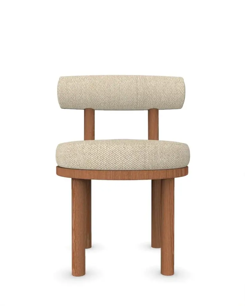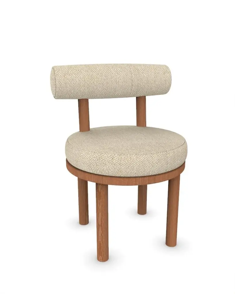 A chair that mixes both modern and classical design approaches. Designed to hug the body, durable and solid chair features a body structure produced in solid wood. In Solid oak wood structure and upholstered in fabric. This piece can be customized to everyones taste. Made in Portugal, by Collector Labeled by Maker