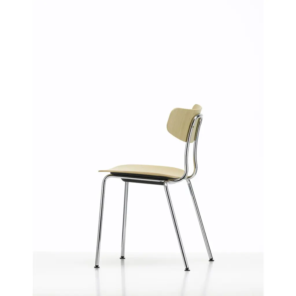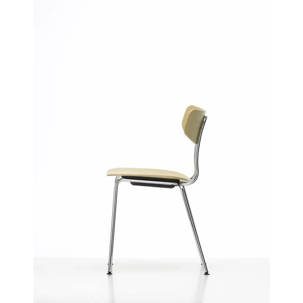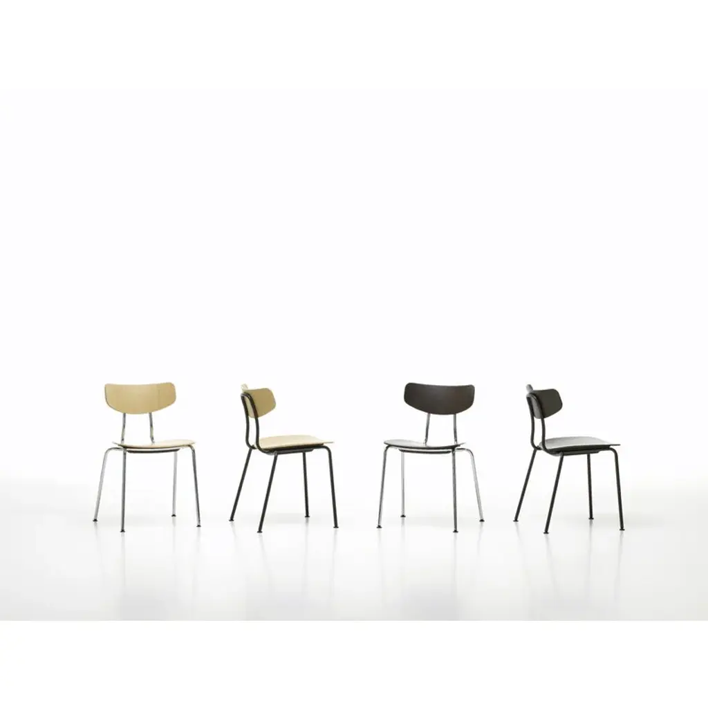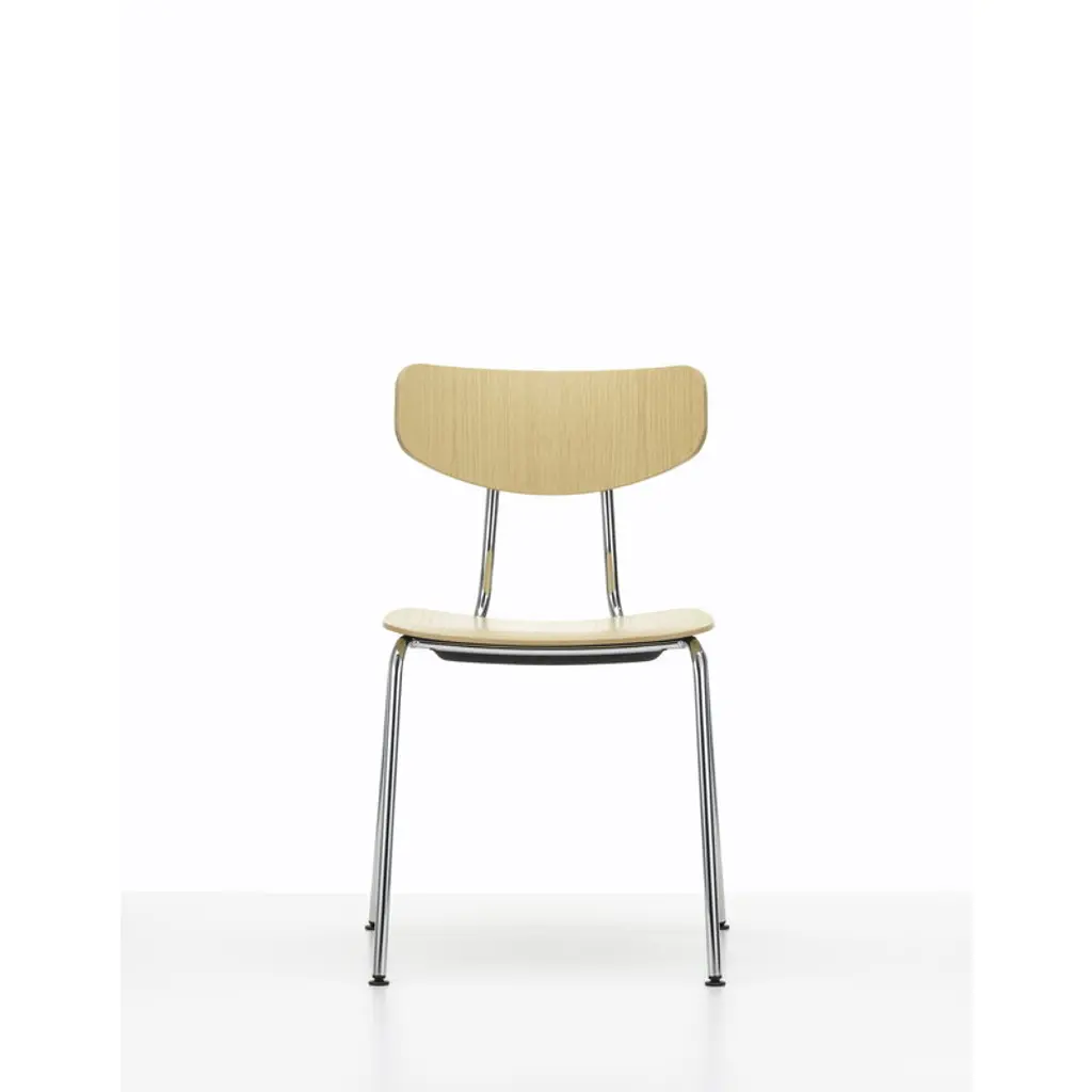 Vitra’s Moca chair is a great example of the “supernormal” design of British designer Jasper Morrison, which emphasizes usability, responsibility and a simple design language without unnecessary gimmicks – yet is always honed to perfection. Designed in 2020, Moca was created to last from generation to generation both in terms of quality and its timeless esthetics. Moca’s frame consists of two metal tubes, one of which forms its rear legs and the other the front legs as well as the backrest support. The seat and backrest are made of veneered plywood, which makes the chair light and therefore easy to move or stack. Peeking under the chair reveals an inconspicuous but practical detail, very typical of Morrison: the bottom of the seat is covered with a handy guard that prevents the veneer surface from being scratched when the chair is stacked.