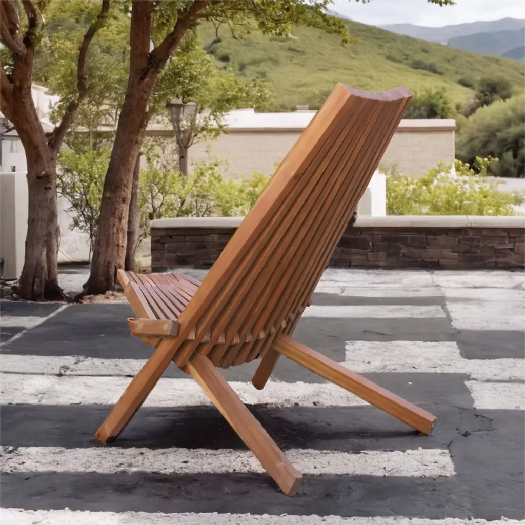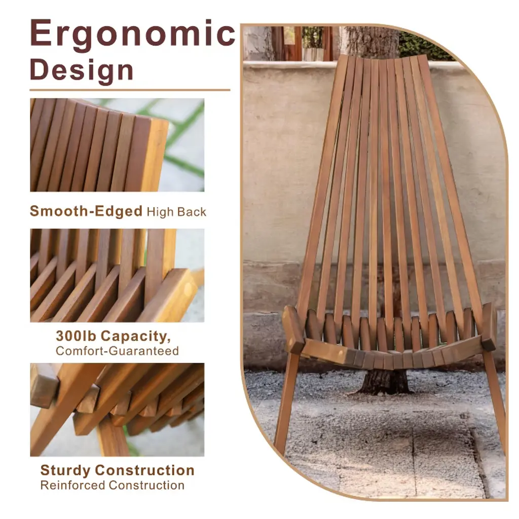 Elevate your outdoor decor with the stylish and durable Acacia Wood Folding Adirondack Chair. Crafted from sustainable acacia wood with a water-resistant seal, this chair features tapered detailing on the back and seat for a sophisticated look. The foldable design allows for easy storage. Enjoy comfortable seating with the slat-back design. No assembly required.