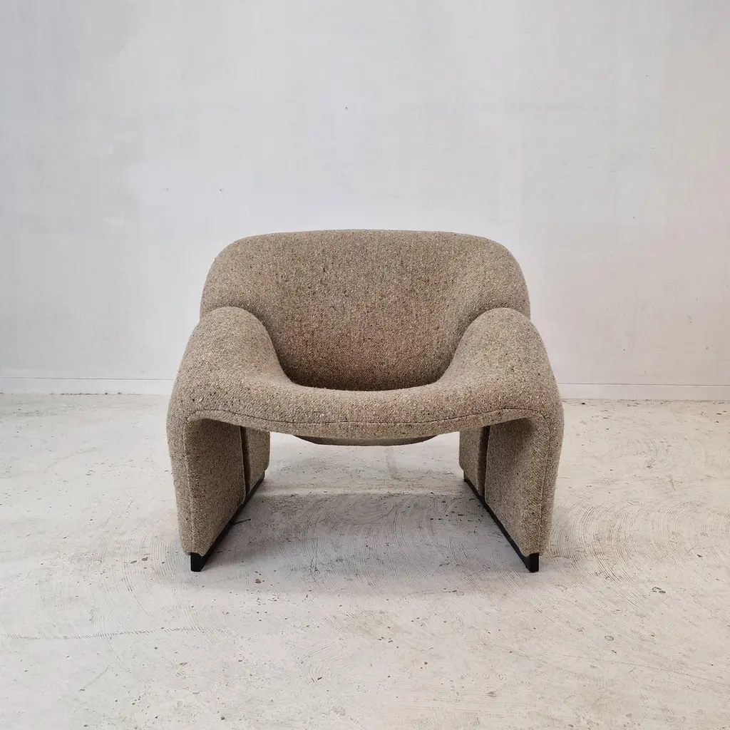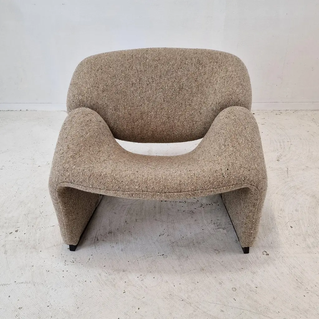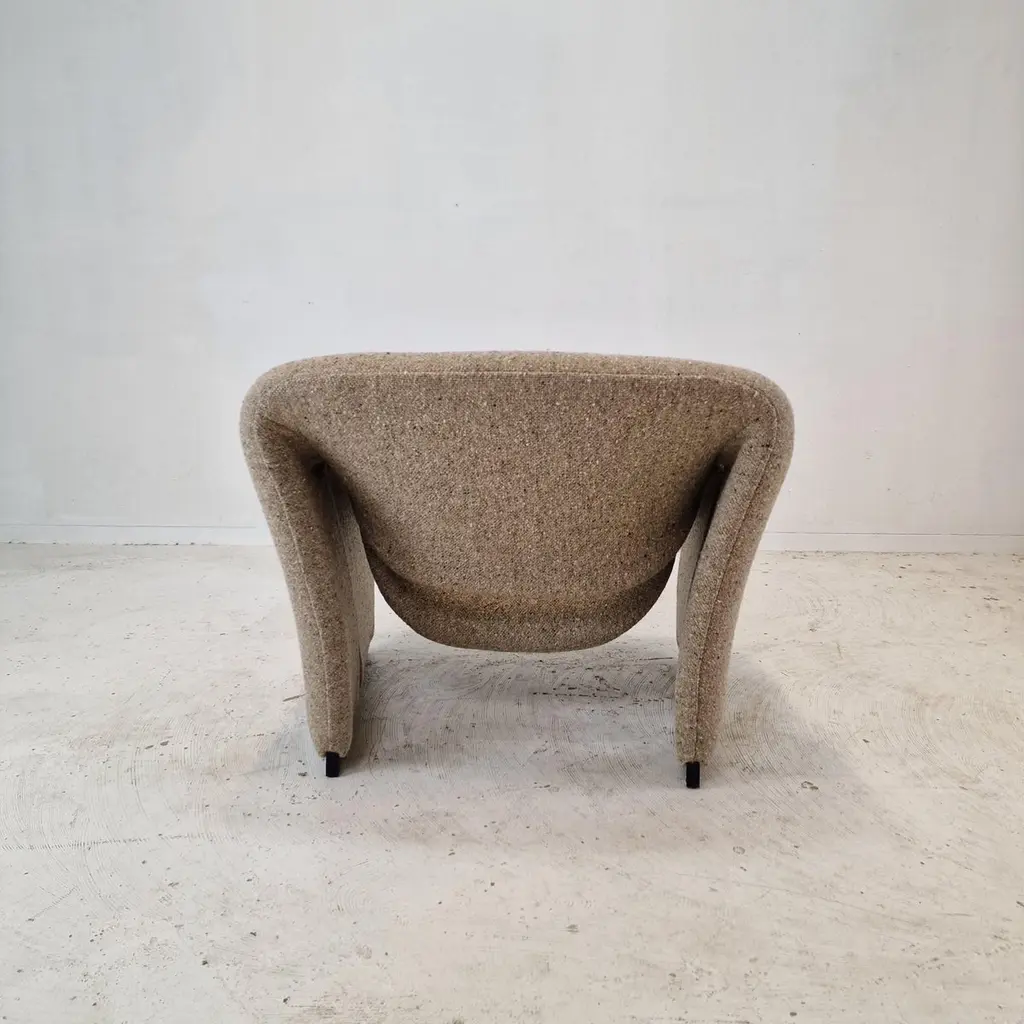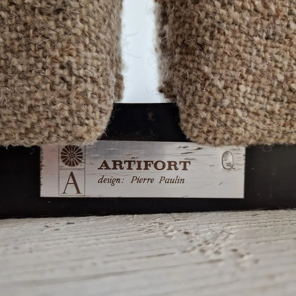 Lovely and very comfortable Artifort Groovy Chair (or "M" Chair), model F580.This model is designed by Pierre Paulin in 1966. These particular chairs are the very first edition with very nice curves, fabricated in the end of the 60's.They are completely restored with new fabric and new foam by a French Pierre Paulin specialist, they are in perfect condition.Both chairs are reupholstered with a stunning wool fabric. This fabric is original from the 80's and was never used. We bought it from a retired upholsterer, the quality is amazing. The price is for one chair, there are 2 chairs available. Both chairs are in perfect condition. It is also possible to choose the color or fabric you want. We have the same chairs unrestored on stock. We work with professional upholsterers and specialists. Please ask for the options.We work with professional packers and shippers, we can deliver worldwide within 5 to 10 days.Pierre Paulin (1927-2009) was a French furniture designer, influenced by the Scandinavian aesthetic, as well as by American prefabrication design. Important is his background in sculpting and stone carving which is the reason why his designs are often opulent and expressive. With the signature organic curves that features in many of his pieces. In 1954 he started a collaboration with Thonet. In 1958, Artifort’s head of design Kho Liang Le recruited Pierre Paulin – his designs are still produced by Artifort today. Paulin said of his time at the company: “It represented the first full expression of my abilities. I considered the manufacture of chairs to be rather simple and I was trying to think up new processes.” With his high profile, he went on to redecorate the rooms of the Elysée’s private apartments for Pompidou and furnish the office of François Mitterrand. In November 2009, he was posthumously awarded the distinction of ‘Royal Designer for Industry’.