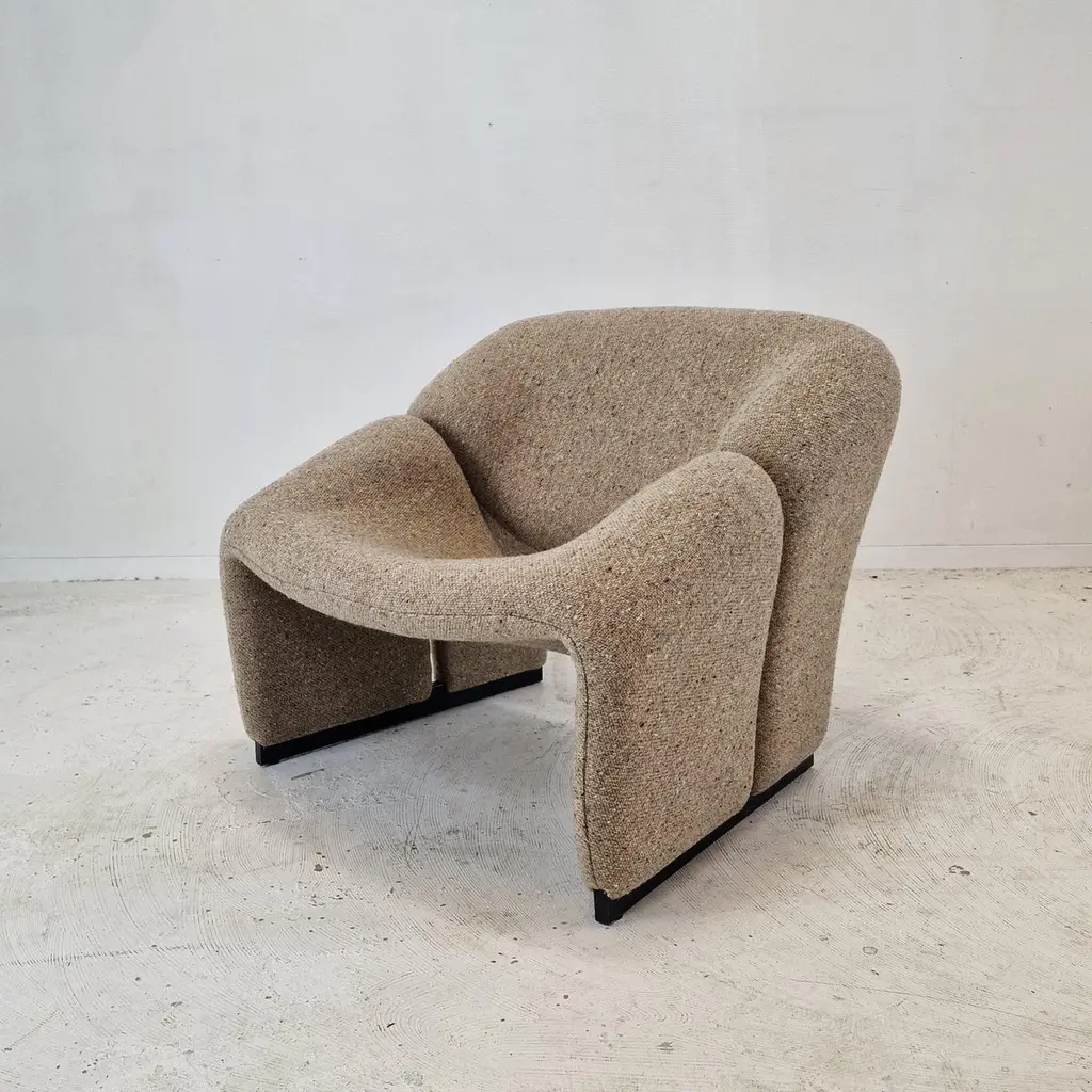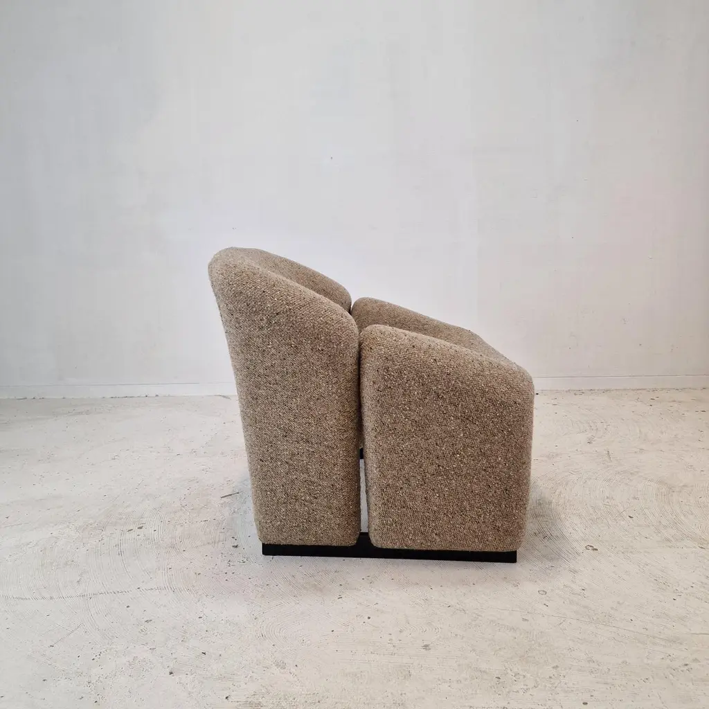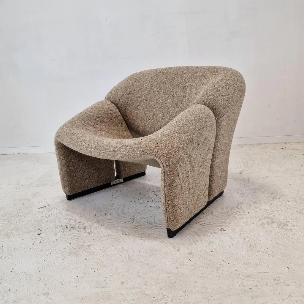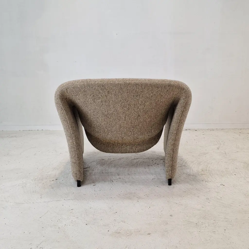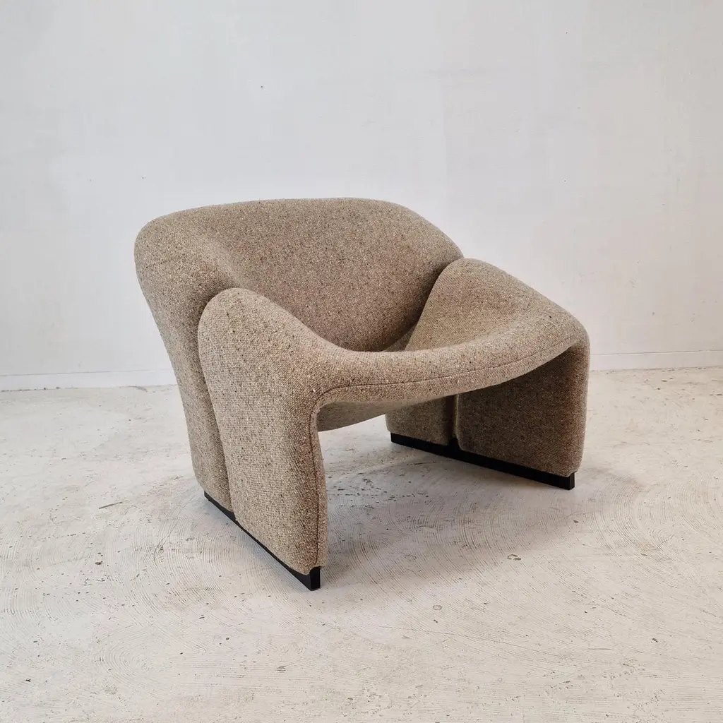 Lovely and very comfortable Artifort Groovy Chair (or "M" Chair), model F580.This model is designed by Pierre Paulin in 1966. These particular chairs are the very first edition with very nice curves, fabricated in the end of the 60's.They are completely restored with new fabric and new foam by a French Pierre Paulin specialist, they are in perfect condition.Both chairs are reupholstered with a stunning wool fabric. This fabric is original from the 80's and was never used. We bought it from a retired upholsterer, the quality is amazing. The price is for one chair, there are 2 chairs available. Both chairs are in perfect condition. It is also possible to choose the color or fabric you want. We have the same chairs unrestored on stock. We work with professional upholsterers and specialists. Please ask for the options.We work with professional packers and shippers, we can deliver worldwide within 5 to 10 days.Pierre Paulin (1927-2009) was a French furniture designer, influenced by the Scandinavian aesthetic, as well as by American prefabrication design. Important is his background in sculpting and stone carving which is the reason why his designs are often opulent and expressive. With the signature organic curves that features in many of his pieces. In 1954 he started a collaboration with Thonet. In 1958, Artifort’s head of design Kho Liang Le recruited Pierre Paulin – his designs are still produced by Artifort today. Paulin said of his time at the company: “It represented the first full expression of my abilities. I considered the manufacture of chairs to be rather simple and I was trying to think up new processes.” With his high profile, he went on to redecorate the rooms of the Elysée’s private apartments for Pompidou and furnish the office of François Mitterrand. In November 2009, he was posthumously awarded the distinction of ‘Royal Designer for Industry’.