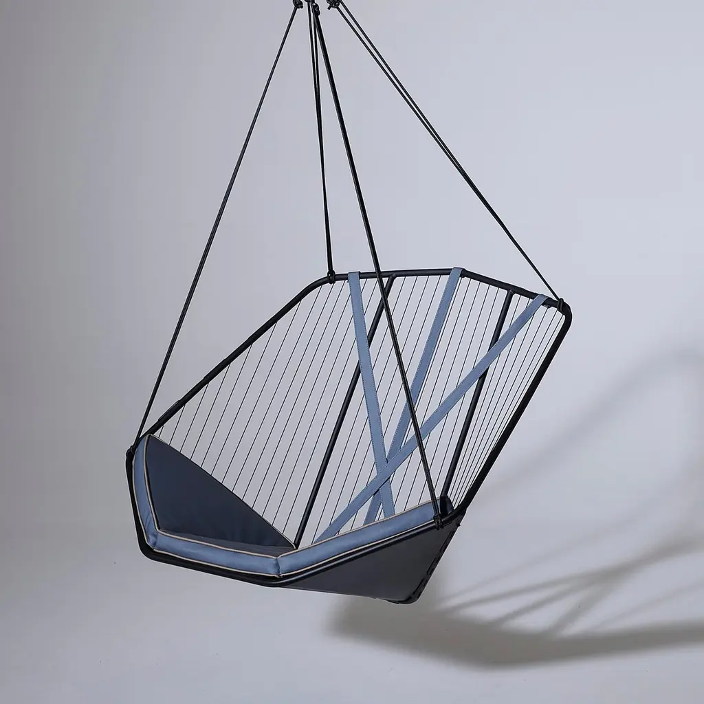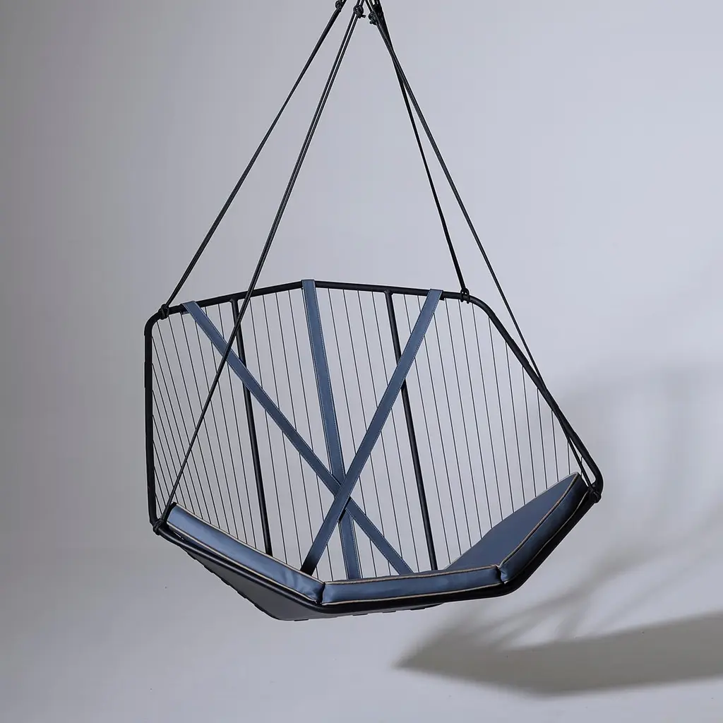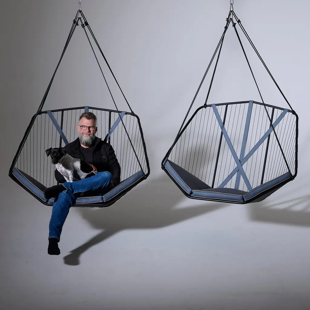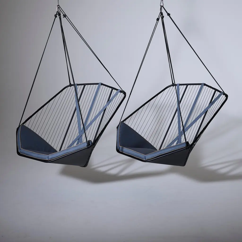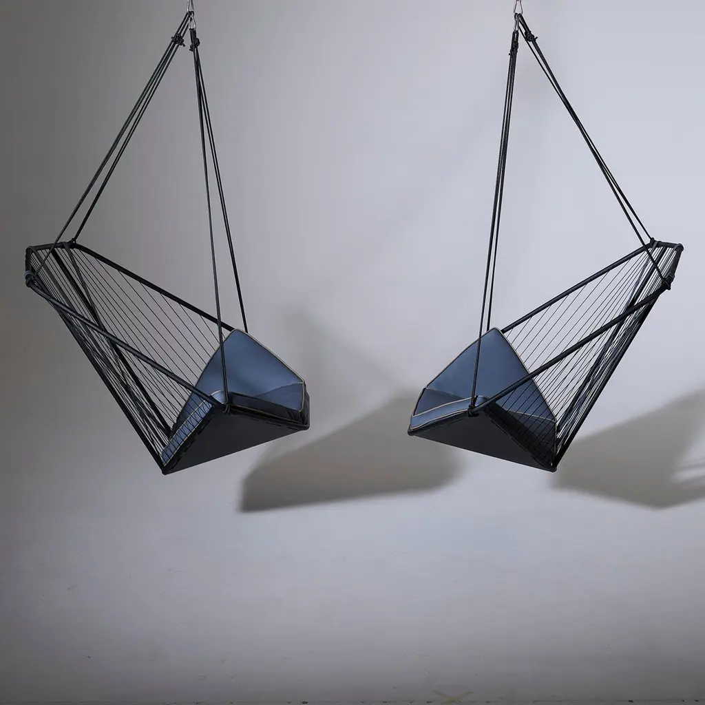 The Studio Stirling AngleSeven Seat has a distinctive design with unique geometry that is unusual and memorable. Not only does it catch the eye with its striking looks, but it also provides a cozy haven for sitting and lounging, designed with ergonomics, great comfort and relaxation in mind. The AngleSeven Seat is not only spacious and elegant in its functional design, but it is made for outdoor environments. This chair adds a touch of modern style to any outdoor environment or setting.Hanging mechanisms are supplied in standard lengths, ready for installation. Beautiful Modern Minimal Contemporary and unique Made By Hand Swing Seat or Chair (with legs) option Outdoor, Indoor & Under Cover Patio Maximum Capacity 120 kgs / 265 lbs Powder Coated Made from Rust Treated Mild Steel Bolster / cushions not included Made in South AfricaSuspended seat:51.2” L (arm to arm) 130cm44.5” W (back to front) 113cm35.4” H (top to bottom) 90cmChair with legs:51.2” L (arm to arm) 130cm44.5” W (back to front) 113cm53” H (top to bottom) 135cm1 Year Warranty-Products to be free from defects in material and workmanship for a period of one (1) year from date of sale. Any product found to be defective within this time period may be returned to our factory, freight prepaid, with prior return authorization for repair or replacement.