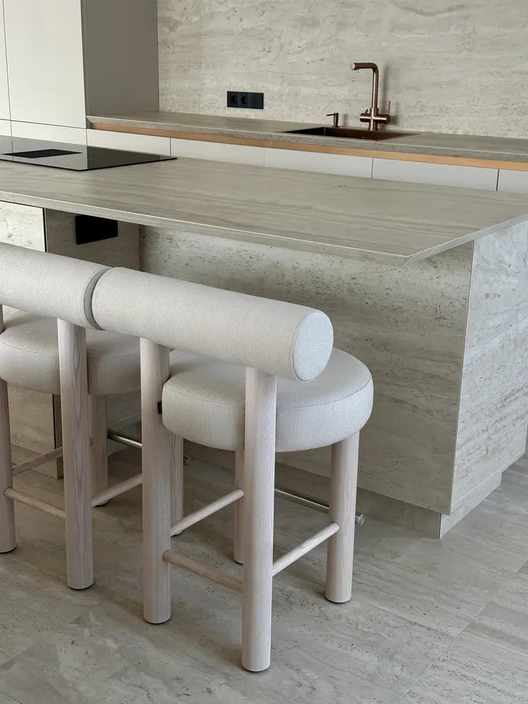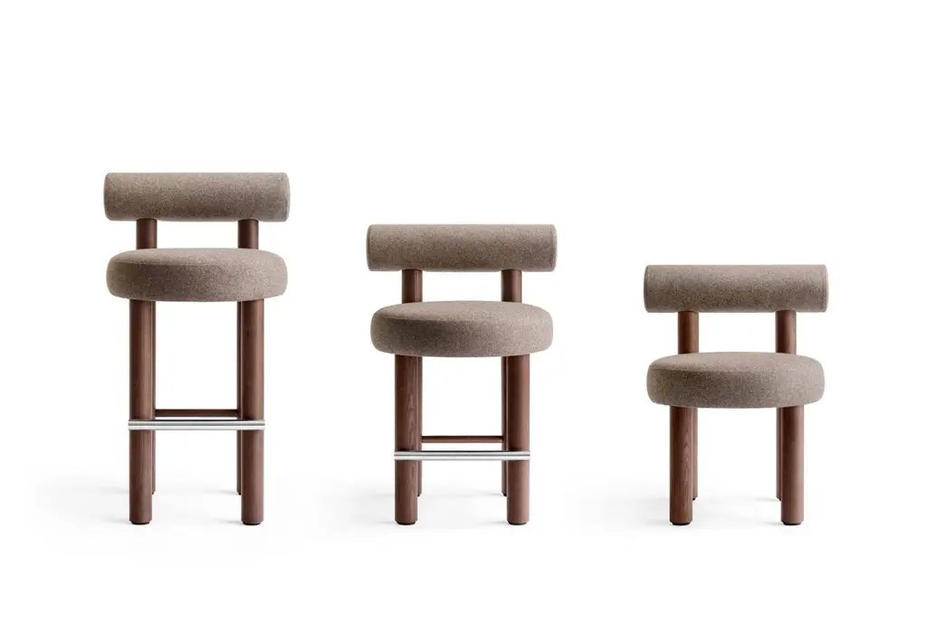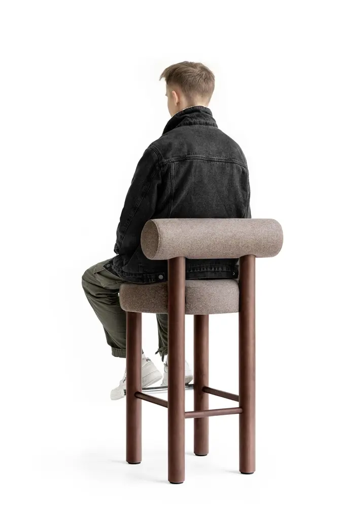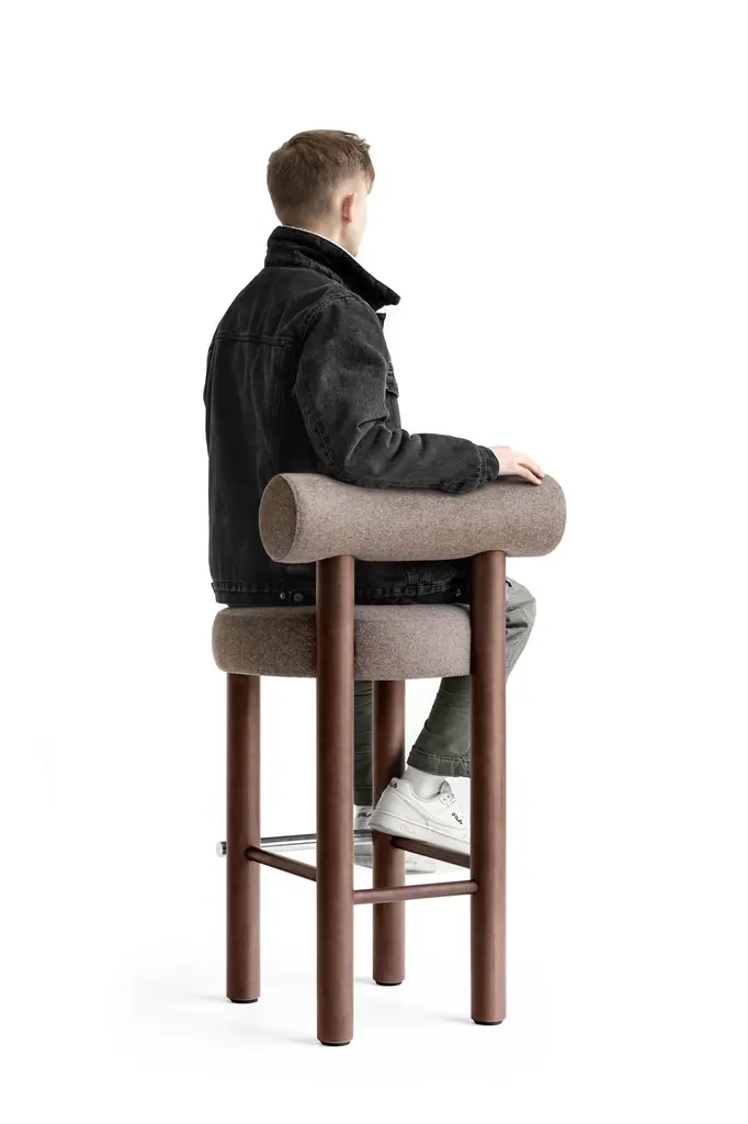 Modern Bar Chair Gropius Cs2/75 In Wool Fabric With Wooden Legs By Noom