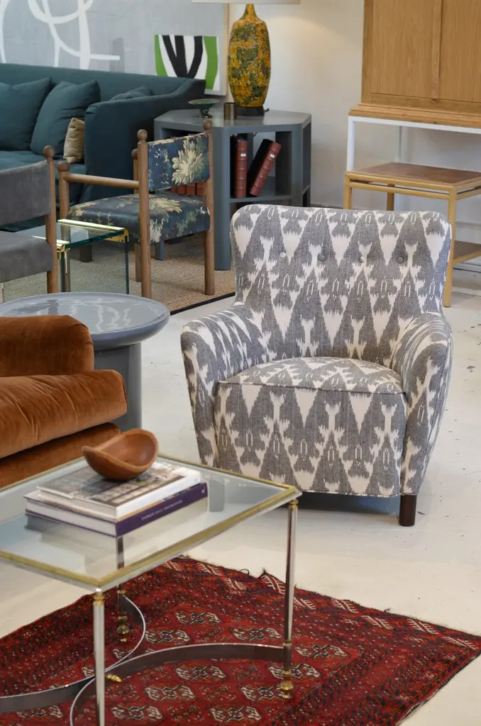 Martin & Brockett’s Ann chair features a tight, eight-way, hand-tied spring seat and streamlined design for a supported seating feel.H 32 in. x W 32 in. x D 36 in. Seat Height 17.5 in.C.O.M. only - 8 yardsPart of M&B’s Ann Collection.Other wood finishes available.Lead time: 8-10 weeks.
