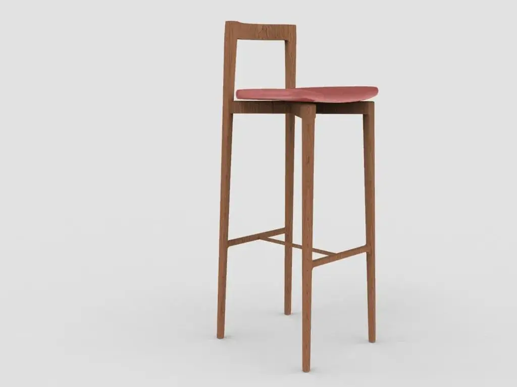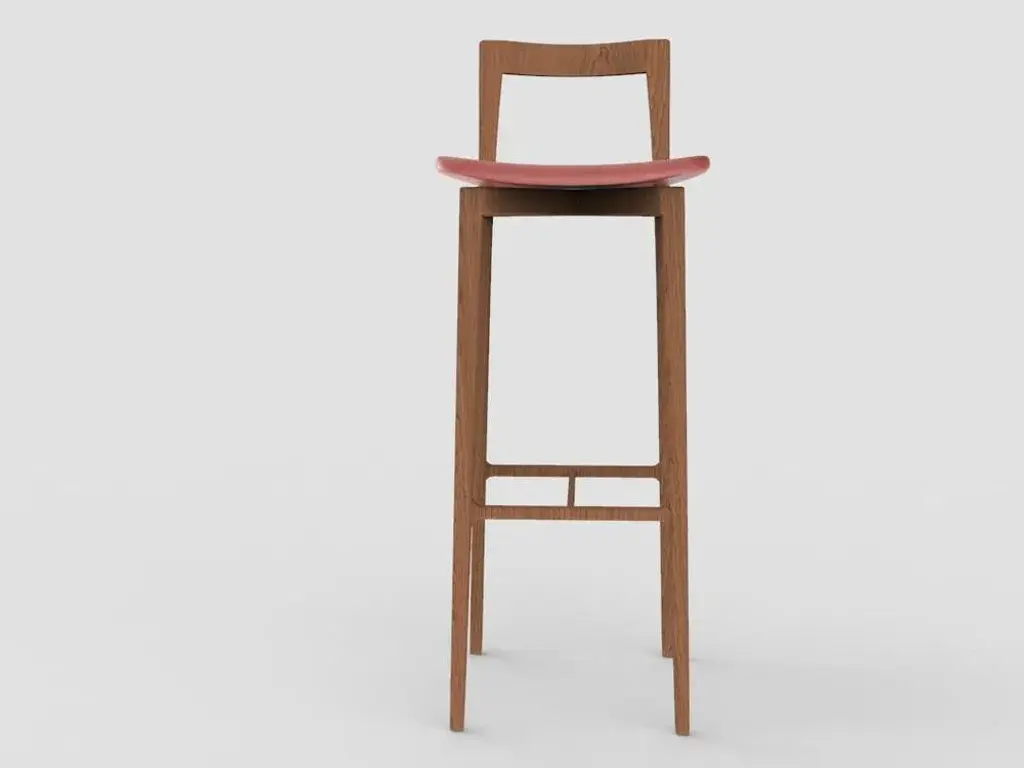 Modern Linea 615 Grey Bar Chair In Red Leather And Wood By Collector Studio