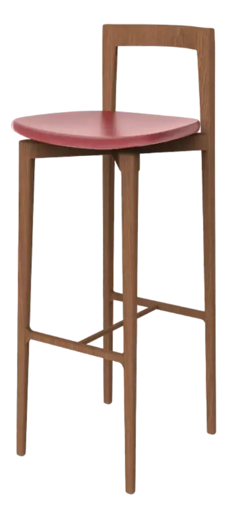 Modern Linea 625 Grey Bar Chair In Red Leather And Wood By Collector Studio