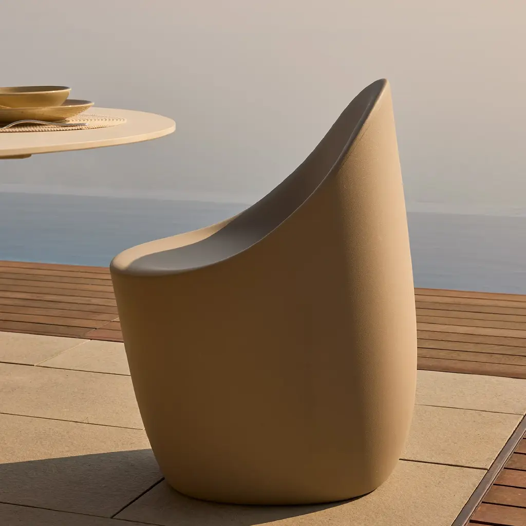 Introducing the Modern Minimalist Chair by Qeeboo Cobble. Comfort and style unite with this sleek and recyclable polyethylene chair, designed by Elisa Giovannoni. Comes in basic finish made of recyclable polyethylene and Ottawa Moleskin finish which is a heavy, durable cotton fabric with a soft, brushed surface, which is similar to mole fur. Available in the same colors as the Cobble table base, it's the perfect addition to any modern and sophisticated space.