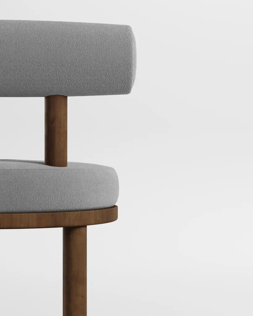 Modern Moca Chair In Bouclé Light Grey & Smoked Oak By Collector