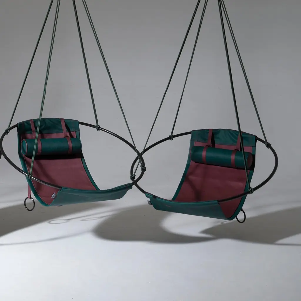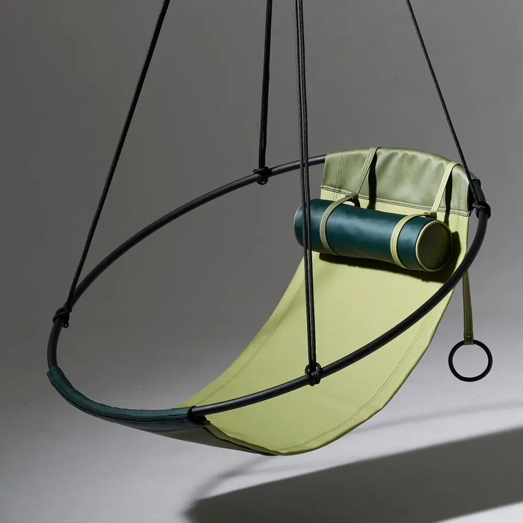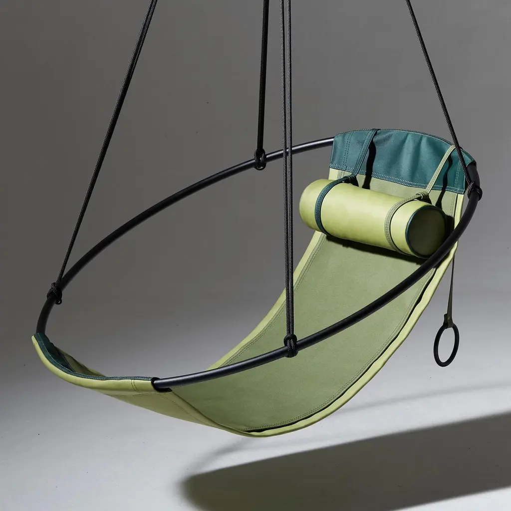 Our Outdoor Sling hanging chair swing seat is crafted with Spradling Silvertex material – a highly sustainable environmentally-friendly vegan material.The Slings can be ordered as a single but also works together as a pair which is slightly different from each other – making an interesting and fun ‘twin’ look. Stripped away from all excess, this hanging chair has a circular frame with the sheets of fabric hanging loose within it, to create a sleek, sexy, and oh so comfortable experience. This chair’s clean lines and lightness makes it a perfect fit for any space.It has a sleek look and an air of functional elegance. Each one is handmade with care by our craftsmen. Form-fitting comfort, perfect for any indoor, under cover patio or outdoor space.Hanging mechanisms are supplied in standard lengths, ready for installation. Contact us for:- available colour options- information on hanging options and standsMade with SPRADLING® Silvertex material – a highly-sustainable vegan and environmentally-friendly material A bolster / neck cushion is included in matching fabric with the straps and weights to hold it in place – dependent on which ones we have in stock Beautiful Modern Contemporary and unique Made By Hand Disassembles and splits in half for flat packing – great in economising packing and freight Indoor & Under Cover Patio & Outdoor Use Maximum Capacity 120 kgs / 265 lbs Powder Coated Frame made from Stainless Steel Made in South AfricaDimensions: L (arm to arm) x W (front to back) x H (top to bottom)100 cm x 100 cm x 35 cm Inches approx. 39.4" x 39.4'' x 13.8"Weight: 8kg / 18 lbs1 Year Warranty-Products to be free from defects in material and workmanship for a period of one (1) year from date of sale. Any product found to be defective within this time period may be returned to our factory, freight prepaid, with prior return authorization for repair or replacement.