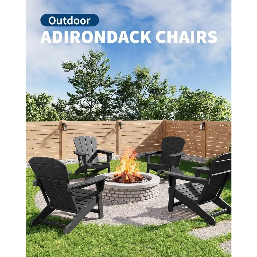 "Product Details: 🪑 Material: High-Density Polyethylene (HDPE) Plastic with Wood Grain Texture ⚙️ Features: Oversized, Reinforced Stable Structure, Wide Armrests, Ergonomic Contoured Seat, Slanted Backrest 🎨 Color: Black ⚖️ Weight Capacity: Supports up to 380 pounds 📏 Dimensions: Oversized design (specific dimensions not provided) 🧹 Maintenance: Low maintenance; easy to clean with soap and water, no painting, staining, or sealing needed 🔩 Assembly: Easy assembly with included hardware and clear instructions Description: ✨ Crafted from durable high-density polyethylene (HDPE), this modern oversized Adirondack chair is designed to withstand rain, sun, and snow, providing year-round outdoor seating that resists cracking, fading, and peeling unlike traditional wood. Supporting up to 380 pounds, this chair features a reinforced, stable structure with wide armrests, a contoured seat, and a slanted backrest for exceptional ergonomic comfort—perfect for relaxing by the firepit, poolside, or on the patio. The realistic wood grain texture delivers the elegant look of wood combined with the low-maintenance benefits of HDPE, effortlessly enhancing your garden, deck, or outdoor lounge area. Easy assembly is guaranteed with all hardware and clear instructions included, allowing setup in minutes. Maintenance is hassle-free, requiring only a simple wipe with soap and water—no painting, staining, or sealing is needed. Ideal for patios, lawns, backyards, decks, and porches, this Adirondack chair blends timeless style, strength, and comfort, making it an essential addition to any outdoor living or gathering space. After-Sales Service: 💡 Customer support available for assembly assistance, product information, and warranty claims. What You Will Receive: 📦 One oversized HDPE Adirondack chair with wood grain texture, assembly hardware, and instructions. Applicable Scenarios: 🏠 Perfect for patios, lawns, backyards, decks, porches, firepit areas, poolside, and any outdoor living or entertaining space.