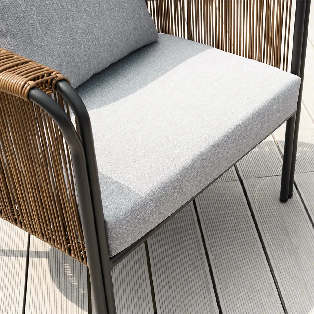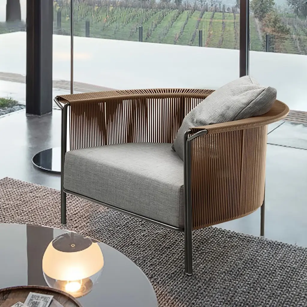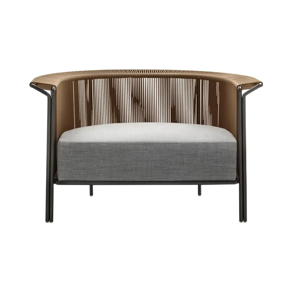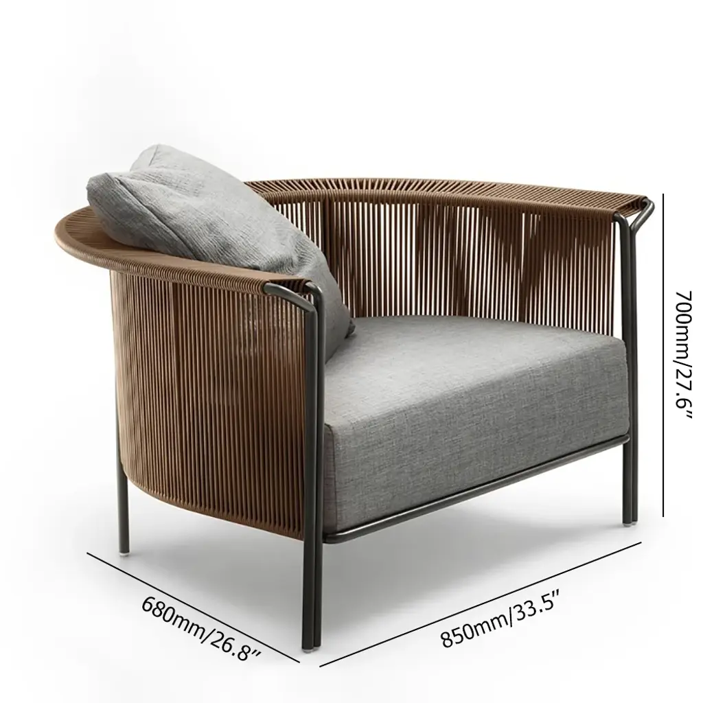 Modern Woven Pe Rattan Outdoor Barrel Chair With Back Flared Edge In Brown & Gray
