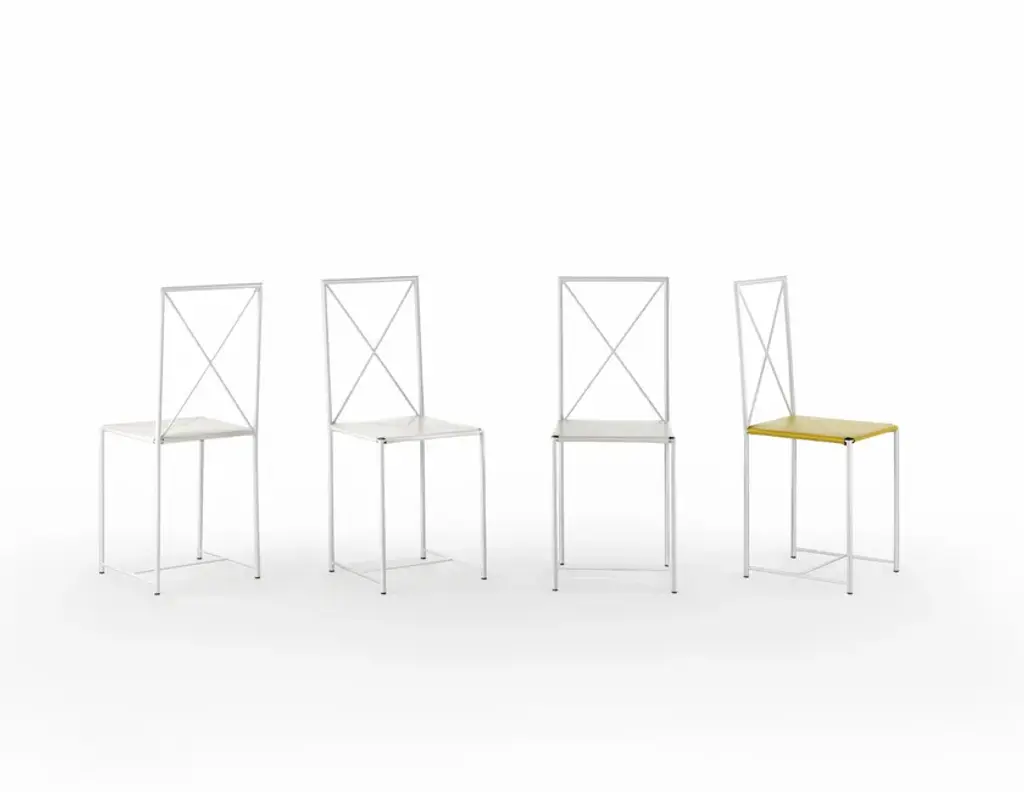 Designed in 1939 by Mario Asnago and Claudio Vender, the Moka chair has been part of the Flexform collection since 1985. Mario Asnago and Claudio Vender began their professional partnership in the 1930s and are legitimately considered among the leading exponents of Italian rationalism. Despite its age, the Moka chair is surprisingly modern and dense with design references reminiscent of pure rationalism. The chair’s structure is made of slender, elegant tubular metal and comes in painted black, white or aluminum color. The seat back features an elegant X-shaped design and the unique woven seat is made of plant fiber or cowhide. The pure, uncomplicated design of the Moka chair places it among the products sure to remain untouched by the passage of time and fleeting fashions.TECHNICAL SPECIFICATIONSFrame lacquered metal: white, black or aluminium. Seat in fibre cord or in hide leather: russian red (5008), white (5007), olive (5006), black (5005), dark brown (5004), dark brown extra (5013), grey (5003), sand (5001), tobacco (5015). MATERIALS Frame: hide leather - suede - metal finishes