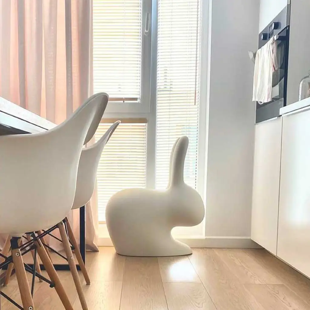 Introducing the Molded Bunny Chair by Qeeboo Rabbit. Designed by Stefano Giovannoni, this bright and boldly shaped chair is not one to hide away. Use it for lounging against the ears or riding it while resting your forearms on its ears. An ultimate expression of luxury and comfort for both indoor and outdoor spaces.