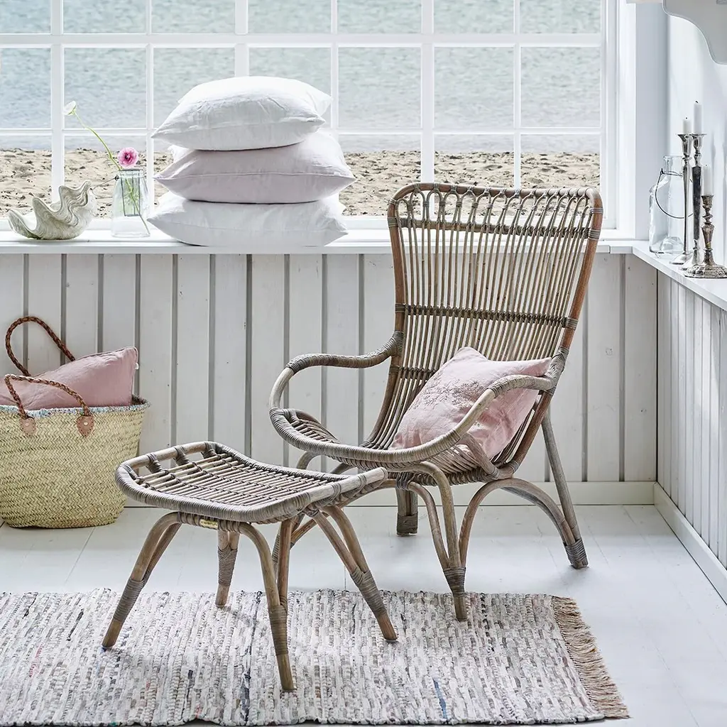 The Monet Chair is our most popular high-backed chair and has the option of a foot stool. Based on drawings from the 1950s and 1960s, this chair is designed for comfort and style. It is handcrafted from natural rattan and is built to last as long as its timeless design.