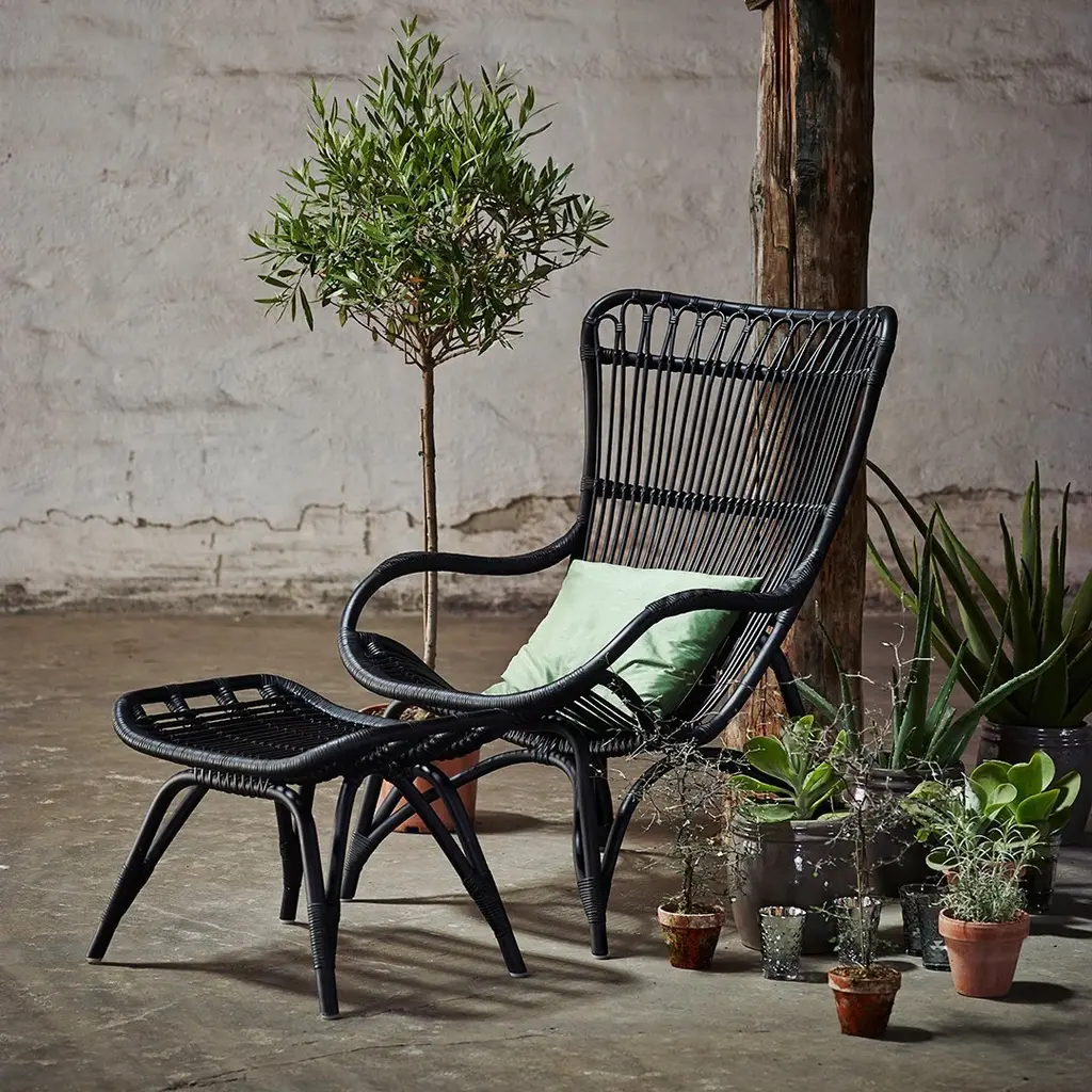 The Monet Chair is our most popular high-backed chair and has the option of a foot stool. Based on drawings from the 1950s and 1960s, this chair is designed for comfort and style. It is handcrafted from natural rattan and is built to last as long as its timeless design.
