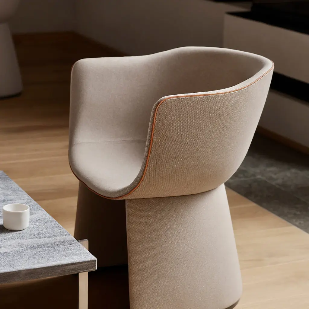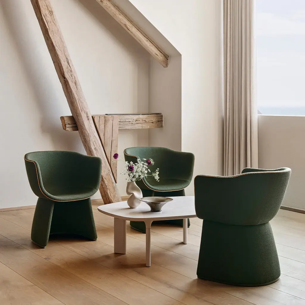 The Monolit by Cecilie Manz is a contemporary and distinct chair design that elevates dining and lounge atmospheres with soft-featured elegance and a tranquil expression. Cocooning the guest in a welcoming embrace, the Monolit's organic curves and sheltering shape offer a sense of privacy and a space underneath to safely store personal belongings. The Monolit can be customised with a range of upholstery options and piping to establish a curated look for interiors both commercial and private. The refined design offers solid stability for long dining experiences. Available in two heights for optimal lounging and dining arrangements.
