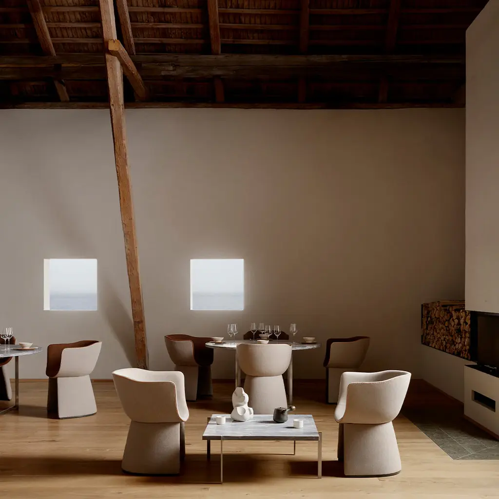 The Monolit by Cecilie Manz is a contemporary and distinct chair design that elevates dining and lounge atmospheres with soft-featured elegance and a tranquil expression. Cocooning the guest in a welcoming embrace, the Monolit's organic curves and sheltering shape offer a sense of privacy and a space underneath to safely store personal belongings. The Monolit can be customised with a range of upholstery options and piping to establish a curated look for interiors both commercial and private. The refined design offers solid stability for long dining experiences. Available in two heights for optimal lounging and dining arrangements.