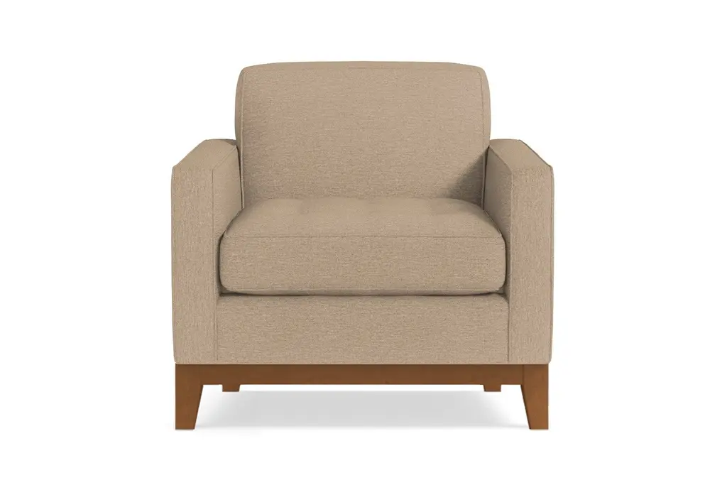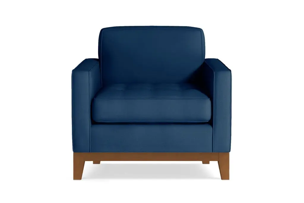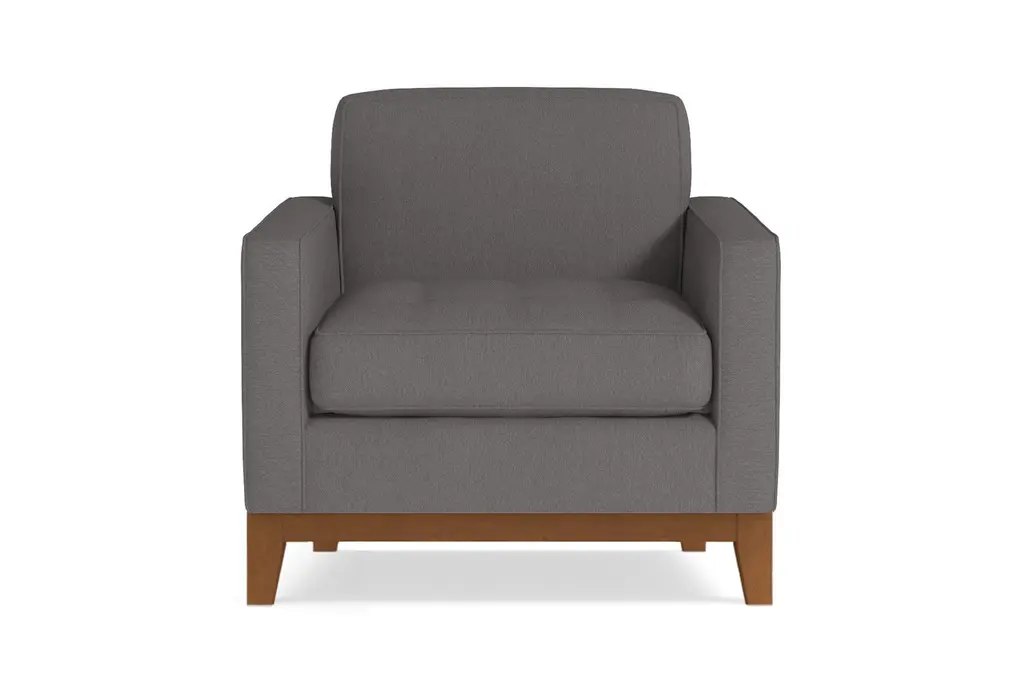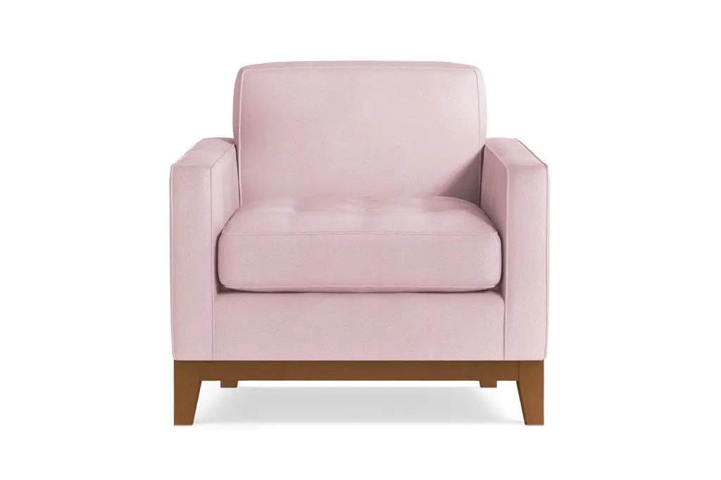 The Monroe Drive Collection is a modern update of our show-stopping Monroe Collection. The same eye-catching Mid Century Modern design details that defined the Monroe are still on display, but now with the addition of a stunning, solid wood base. The sophisticated button-tufted cushions and sleek tight back make The Monroe Drive look like it came straight from a classic Hollywood film set. The contemporary base creates a handsome, formal profile that allows the Monroe Drive to feel right at home in a variety of different decor styles. Available in your custom choice of our kid friendly and pet friendly fabrics, the Monroe Drive is perfect for your family home, for your sophisticated apartment, or for your chic small space loft.