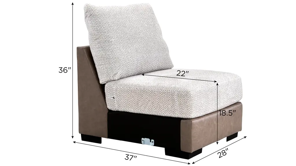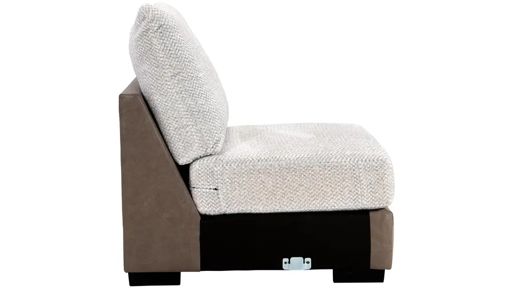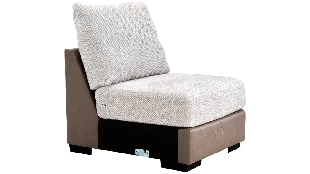 Make a bold statement with the extravagant comfort and striking style of the Mosley armless chair. A key component of the chic two-toned Mosley sectional, it features soft chenille on the inviting seating area, while the base is upholstered in complementary faux leather for a touch of modern style. Outsized proportions make it perfect for entertaining or lounging.