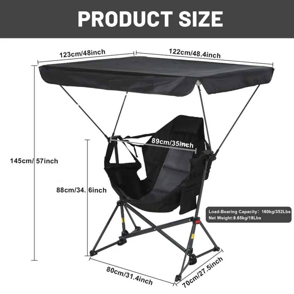 Experience ultimate outdoor comfort with our hammock-style camping chair, designed for relaxation and convenience wherever you go. Featuring a wide, cradling seat, adjustable canopy, and sturdy steel frame, it’s perfect for camping, tailgating, beach days, or your backyard. Stay organized on the go with built-in storage and enjoy easy portability thanks to its foldable, travel-ready design.