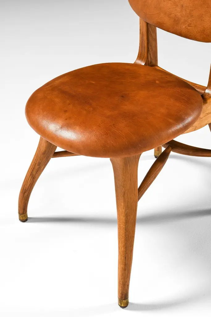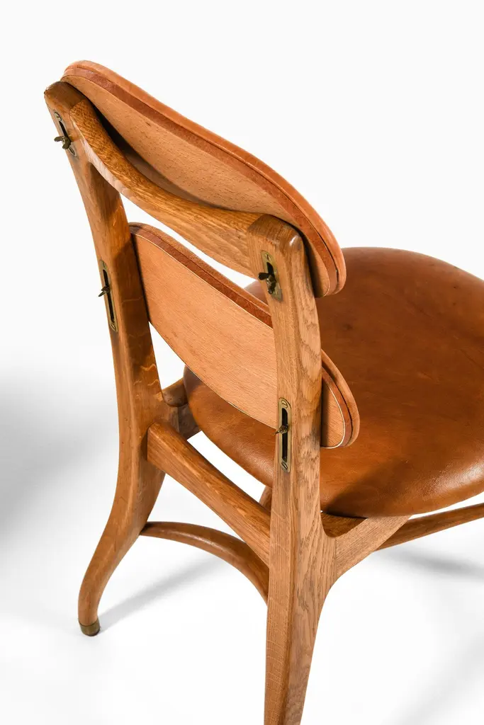Musician Chairs with Adjustable Seat and Back in Oak, Brass and Niger Leather by Vilhelm Lauritzen, 1942Additional Information:Material: Oak, brass and niger leatherStyle: Mid century, ScandinavianProduced in DenmarkDimensions (W x D x H): 40 x 51 x 81.5 cmSeat Height: 41 cm