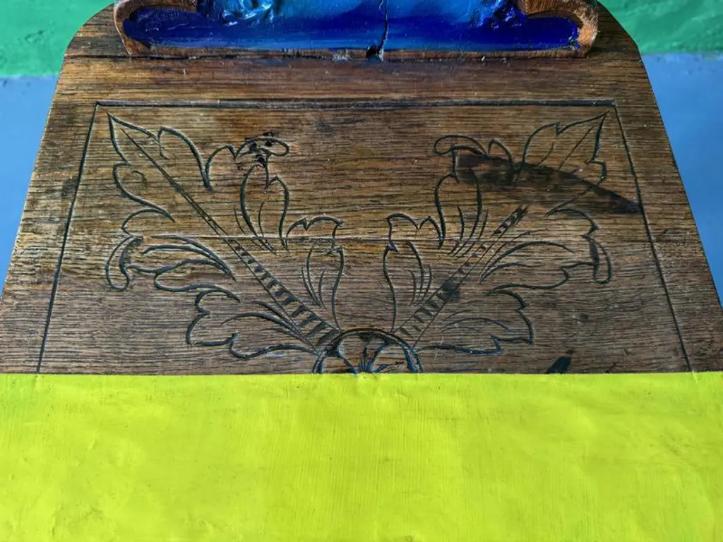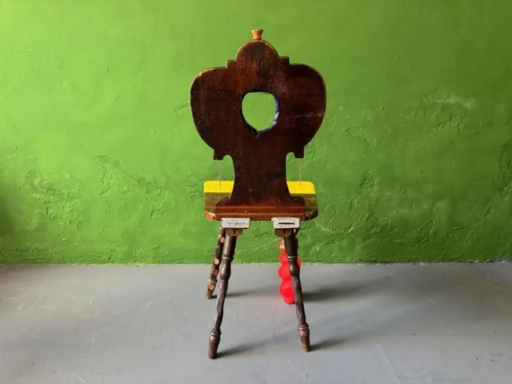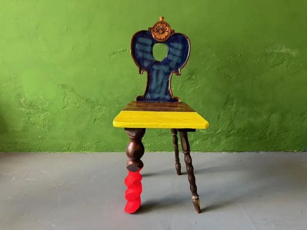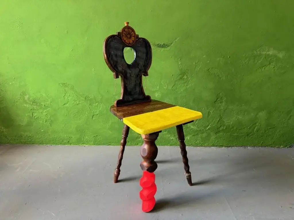My land is your land farm chair by markus friedrich staab one of a kind dimensions: d 45 x w 42 x h 86 cm. Materials: wood, lacquer, paint. Farm chair from austria, contemporized. this piece is attributed to the mentioned designer/maker. It has no attribution mark and no official proof of authenticity, however it is well documented in design history. I take full responsibility for any authenticity issues arising from misattribution