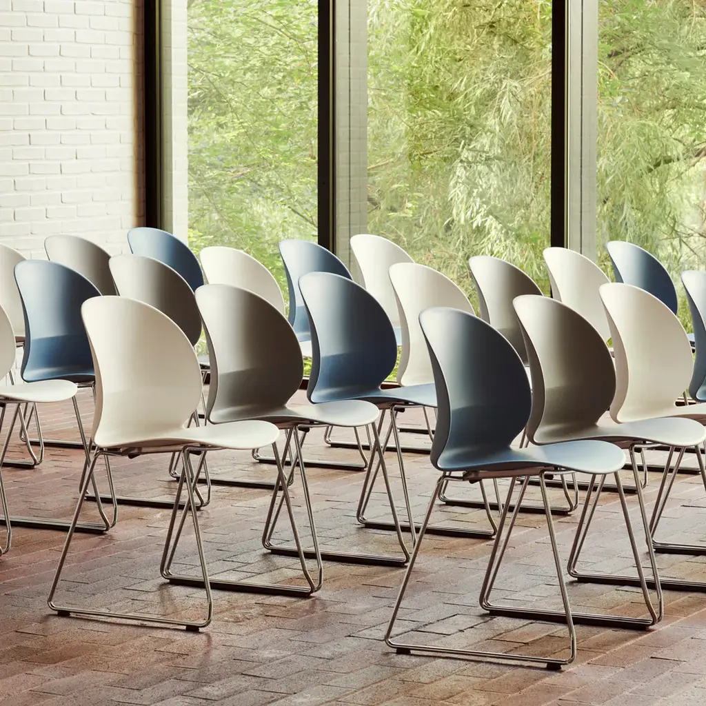 N02TM Recycle is a strong, stackable chair by Japanese studio nendo inspired by a simple crease of paper on the designer's work table. The chair's elegant shell is circular plastic, meaning it is made of recycled plastic that can be recycled again if necessary. The plastic for N02TM Recycle comes from household, plastic waste collected, processed and upcycled in central Europe. Leg and shell options make N02TM a strong solution for a variety of contract settings such as meeting rooms, canteens and presentation spaces. Soft edges make this chair extremely comfortable for extended periods of time.
