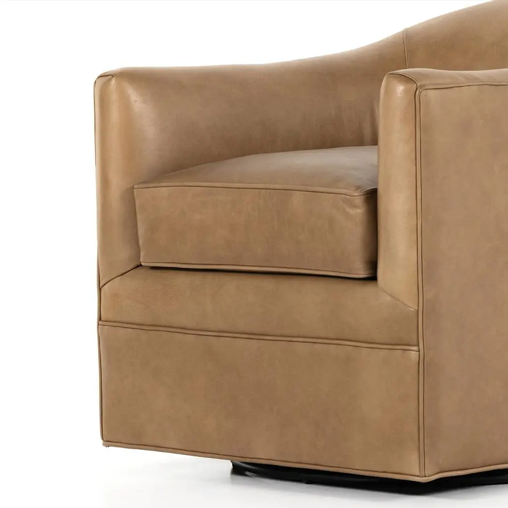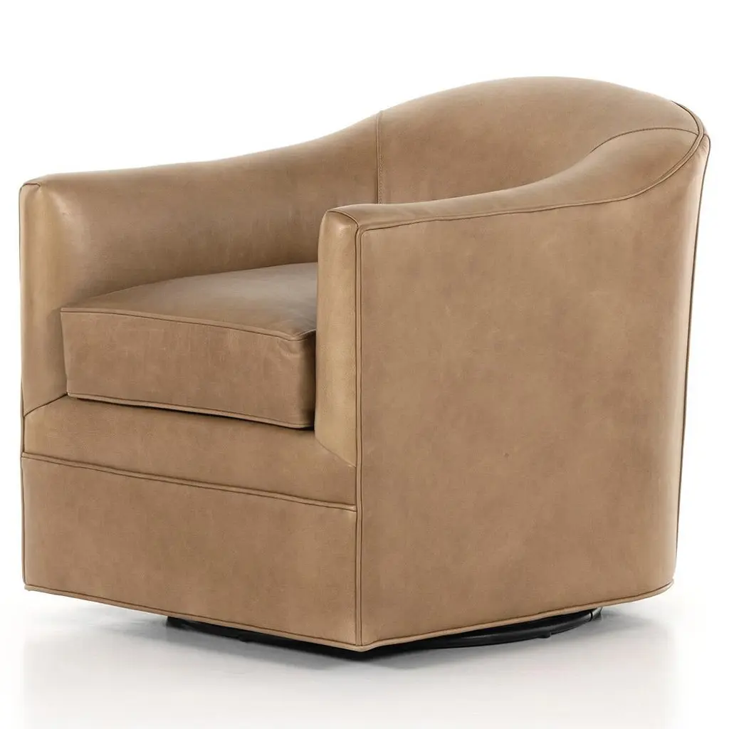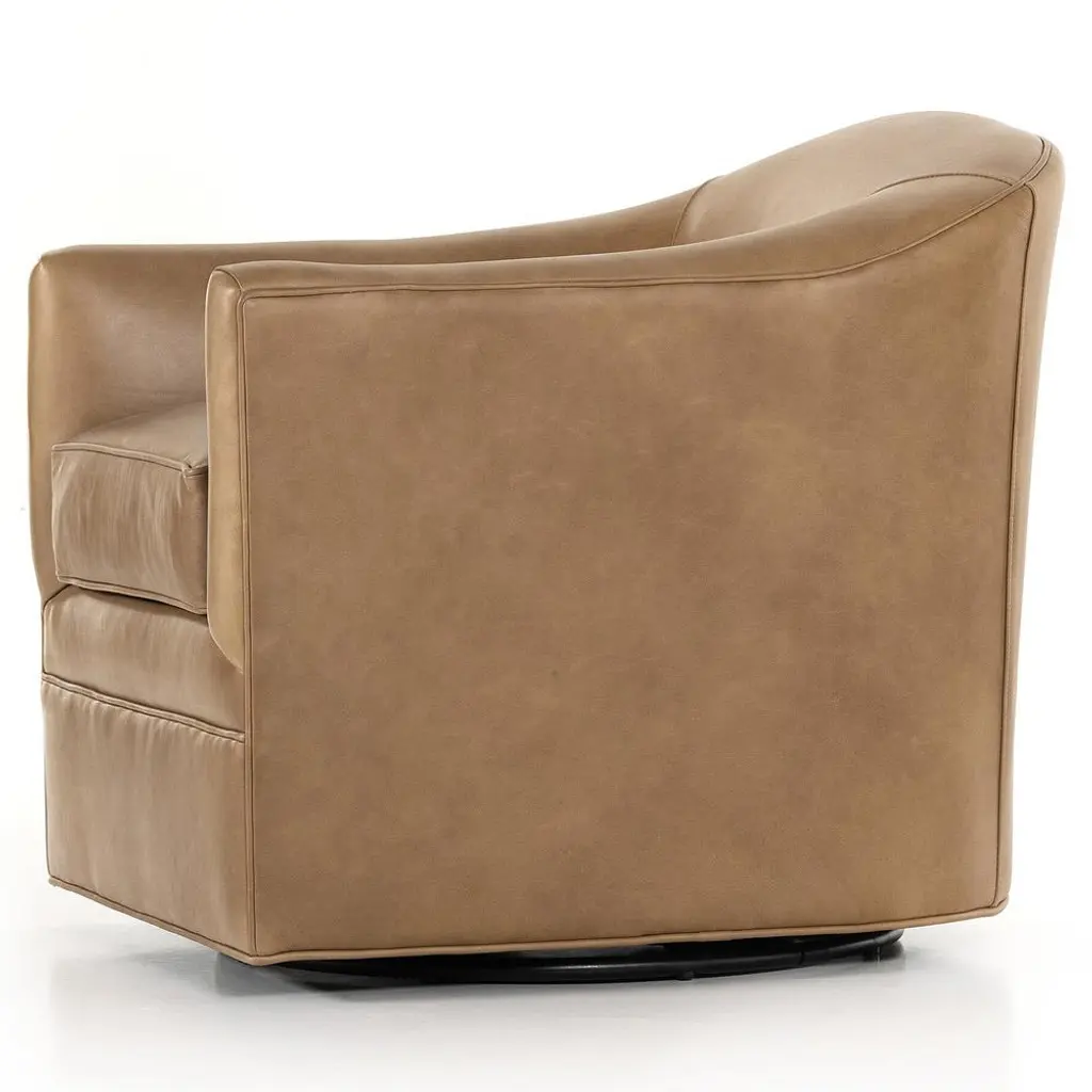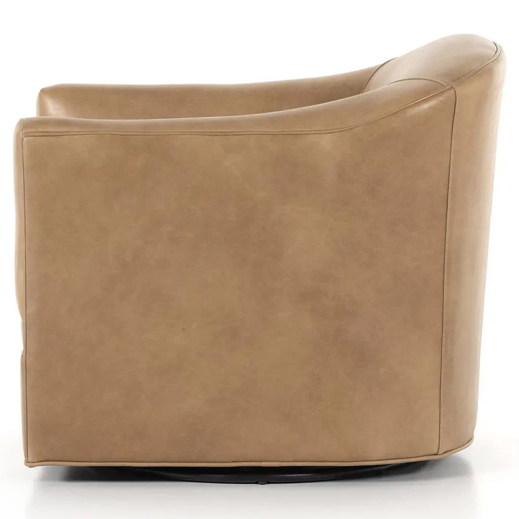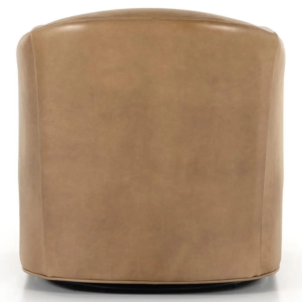 Nalini Rustic Lodge Taupe Leather Swivel Barrel Chair