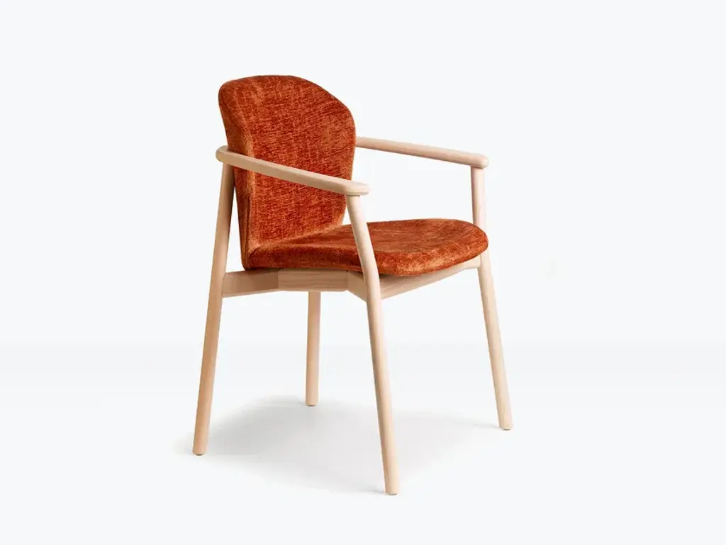 Enveloping, sinuous, and with a look that is able to combine comfort and grit, Lady B inhabits the contract world, like bars and restaurants, with style, and furnishes with elegance the most exclusive living environments. In technopolymer with bare or padded body, bleached or black beech frame, the Natural Lady B version gives warmth and personality to any setting.