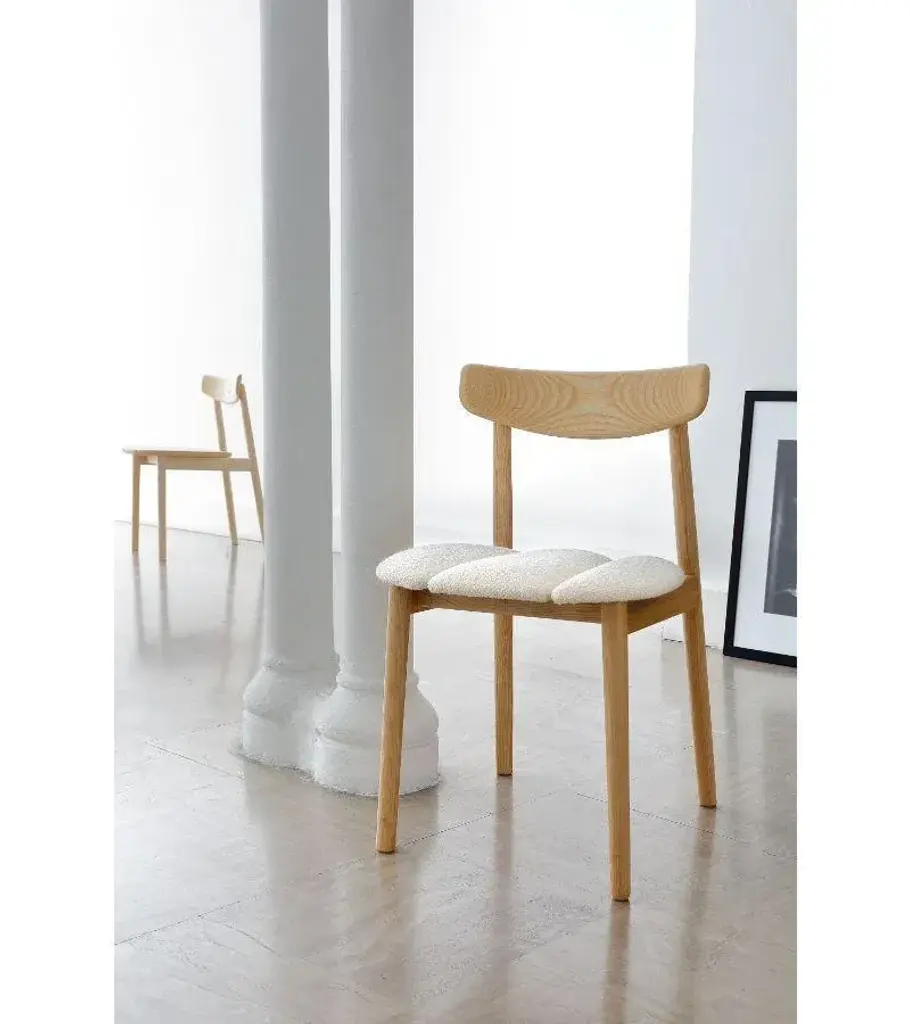 Natural Oak Klee chair 2 by Sebastian Herkner Materials: Natural Oak. Fabric. Technique: Varnished. Seat upholstered in fabric. Dimensions: D 45 x W 42 x H 78 cm Available in black stained ash and upholstered in different fabrics.