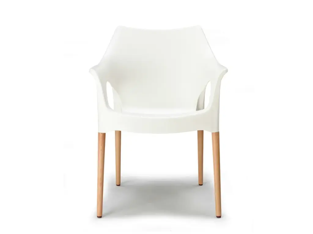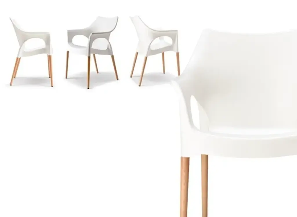 The passion for shapes is a natural fact. The use of wood sculpts the shapes of Natural Ola creating a very elegant contrast, in a chair perfect to show off the environment at its best. Linen colour recyclable polypropylene seat and backrest, natural beech legs. For indoor use. It is stackable. PURCHASE INFORMATION : Price includes 4 pcs. with the same configuration.